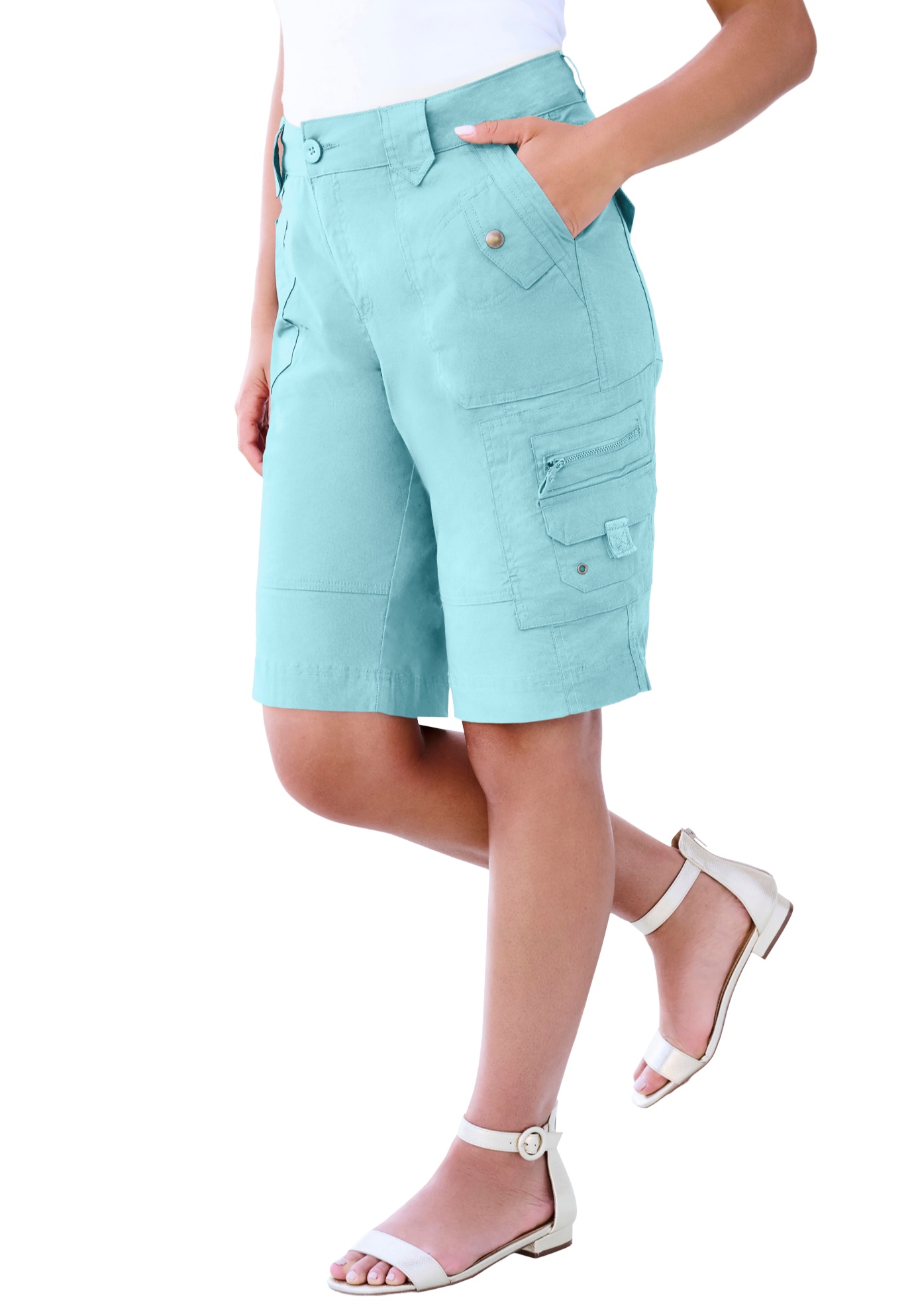 Plus Size Women's Plus Size Cargo Shorts by Roaman's in Light Turq (Size 26 W)