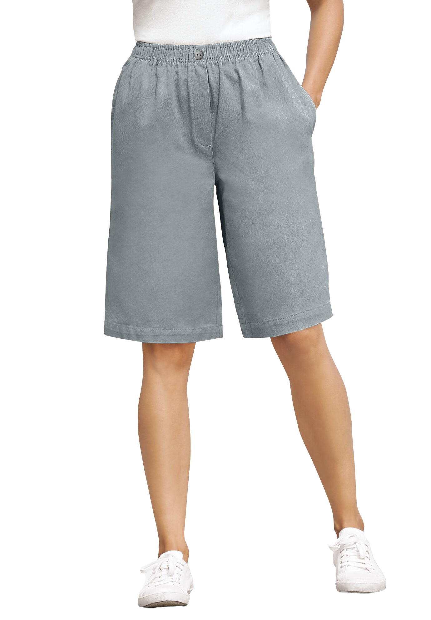 Plus Size Women's 7-Day Elastic-Waist Pull-On Cotton Denim Shorts by Woman Within in Gunmetal (Size 16 W)