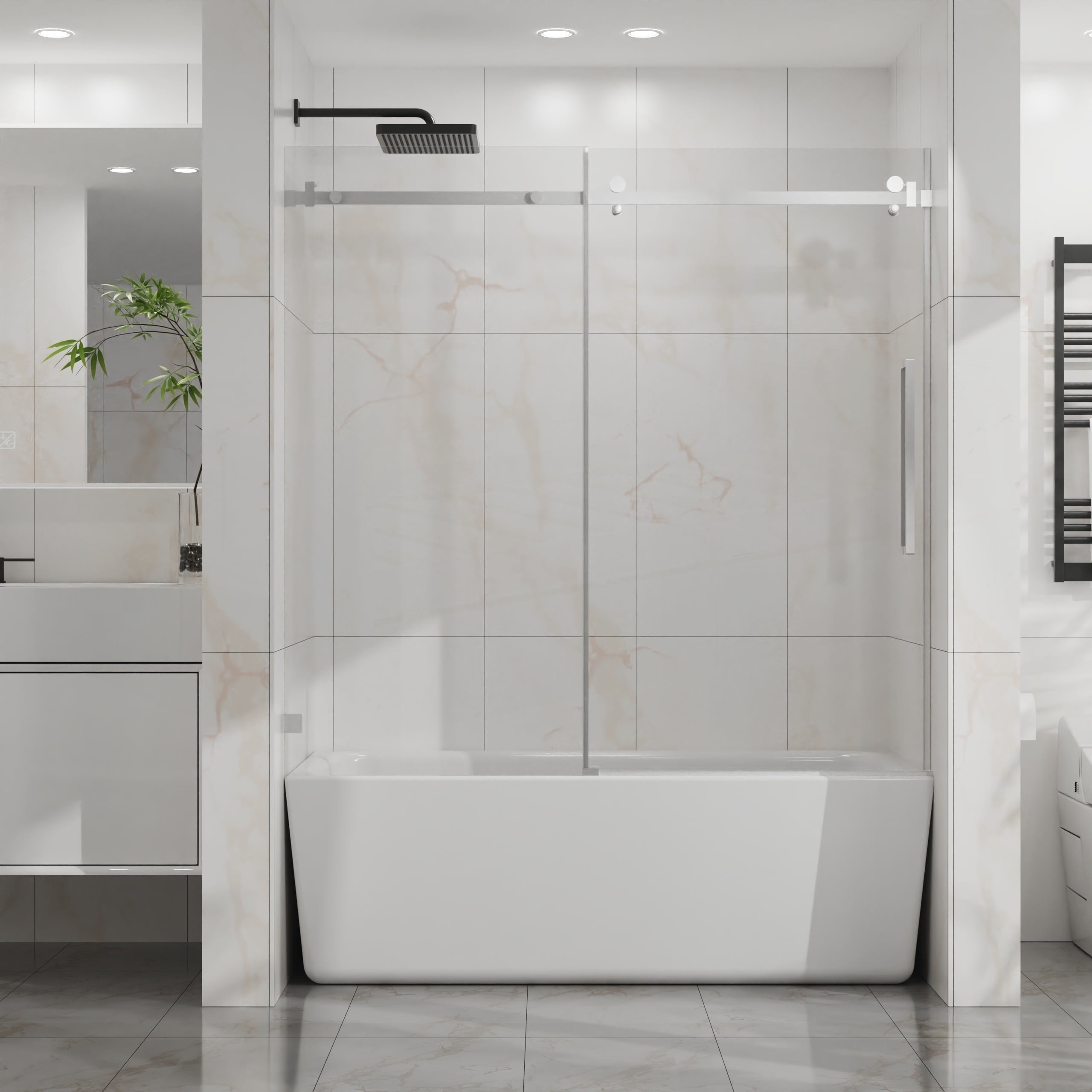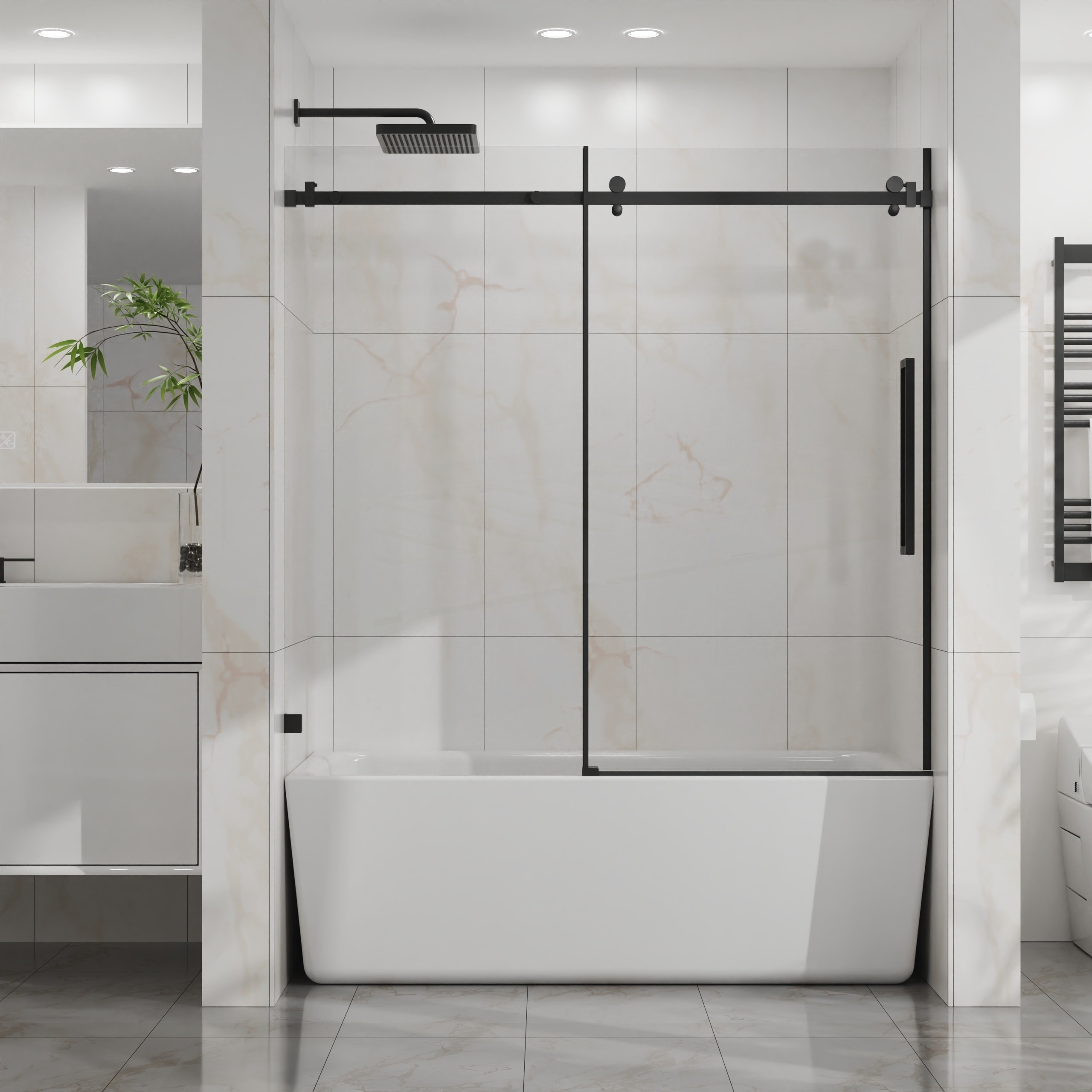 56-60" W x 72" H Semi-Frameless Sliding Shower Door, 5/16"(8mm) Clear SCGG Tempered Glass, Finish Material Matte Black
