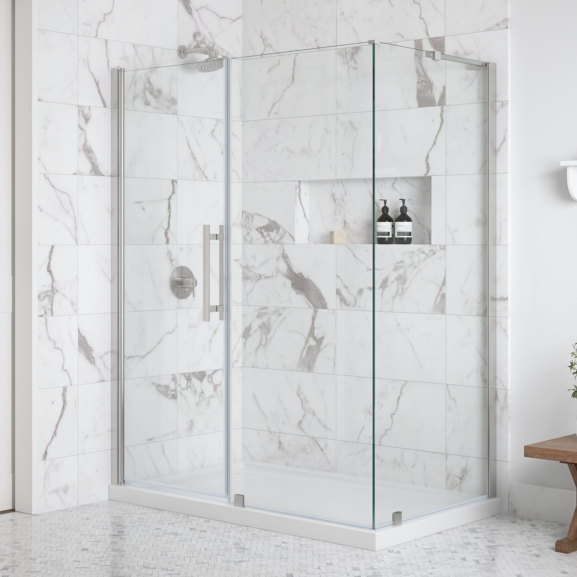 Breeze Pivot Corner Frameless Pivot Shower Door Kit with Base Pan