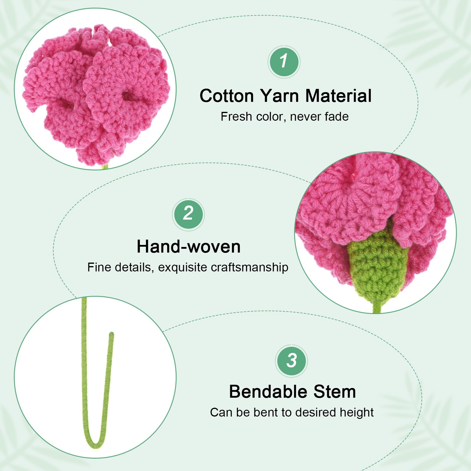Crochet Flowers, Knitted Artificial Wool Carnation Handmade Knitted Flowers