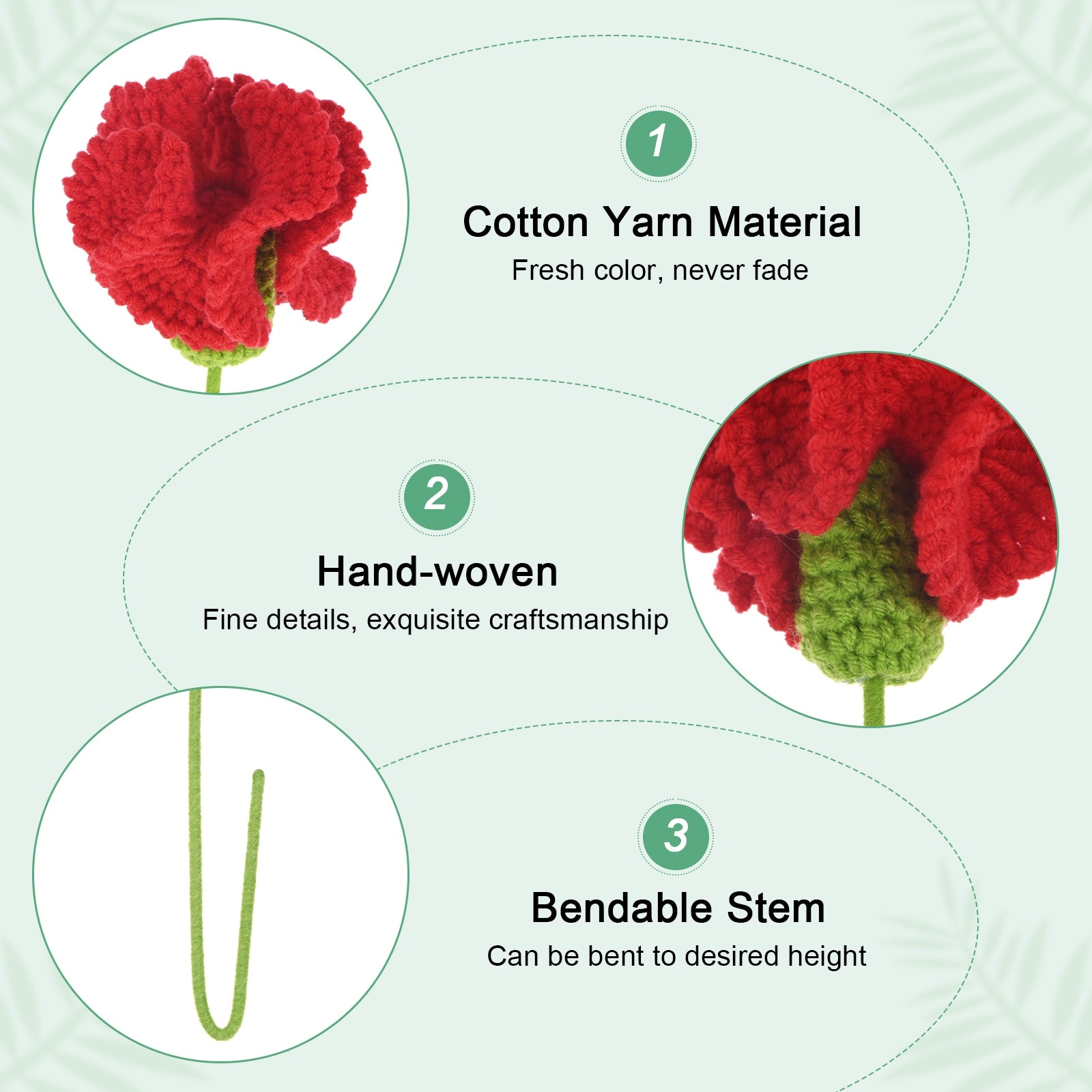 Crochet Flowers, Knitted Artificial Wool Carnation Handmade Knitted Flowers
