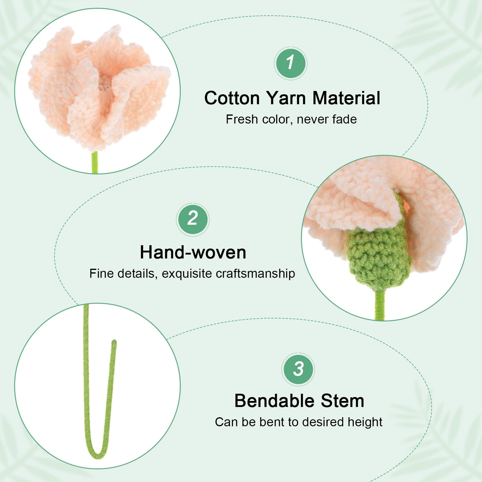 Crochet Flowers, Knitted Artificial Wool Carnation Handmade Knitted Flowers