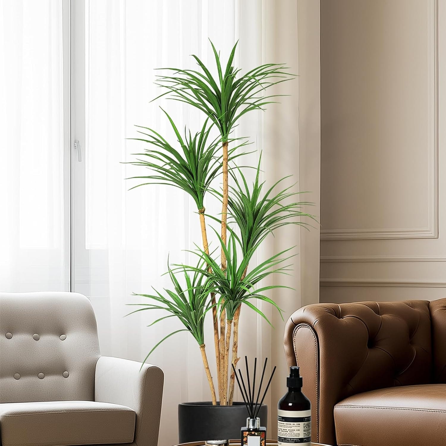 5FT Dracaena Tree Natural Trunk Moss for Home Office & Patio