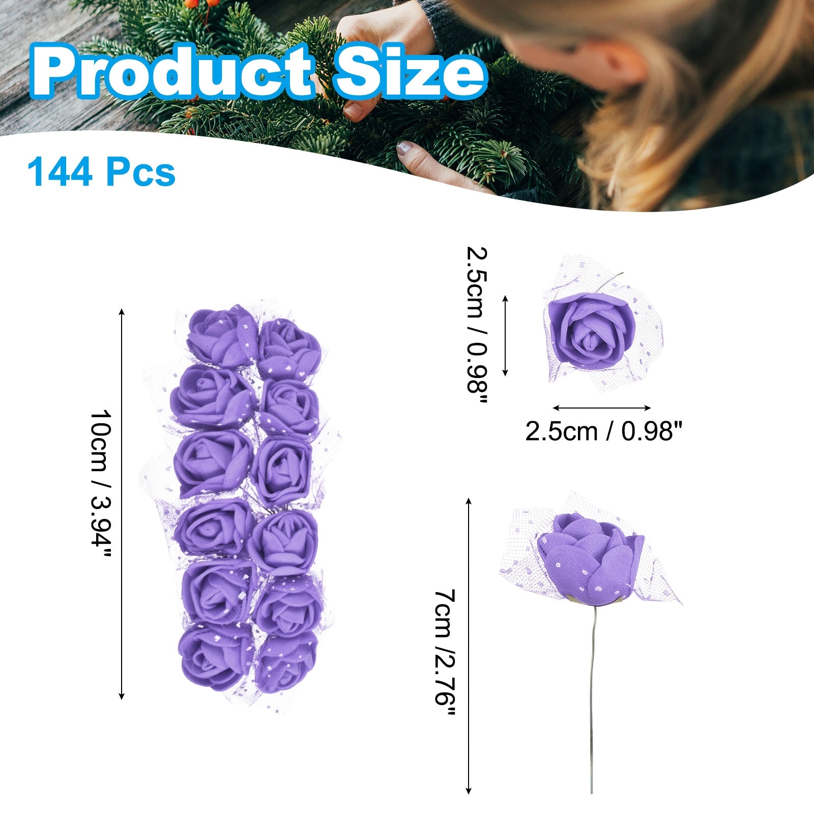 Mini Rose Artificial Flower Heads Bulk with Stem & Gauze - 144Pcs, 0.98"