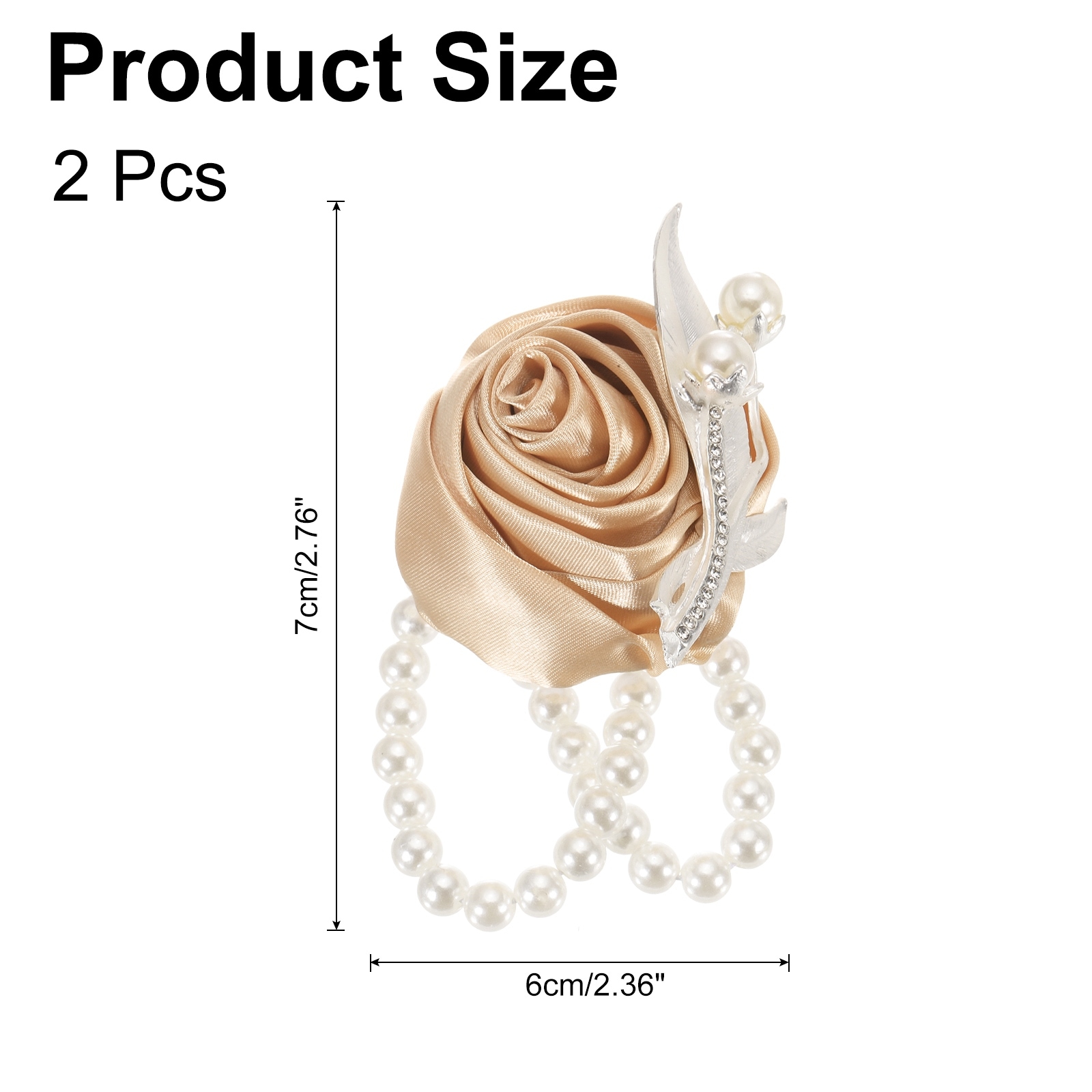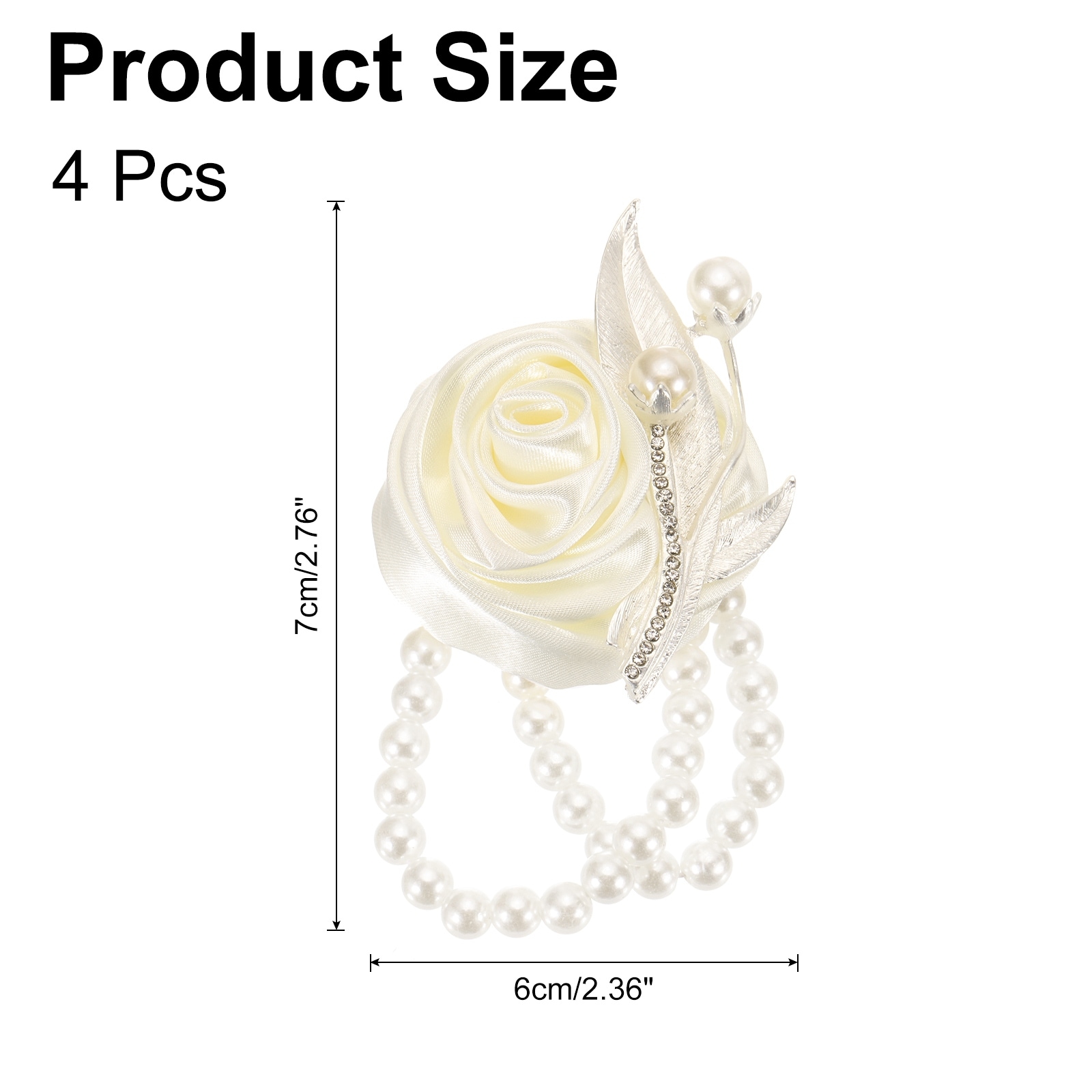 2Pcs Wrist Corsage Artificial Flower Bracelets, 2.4 x 2.8 Inch White