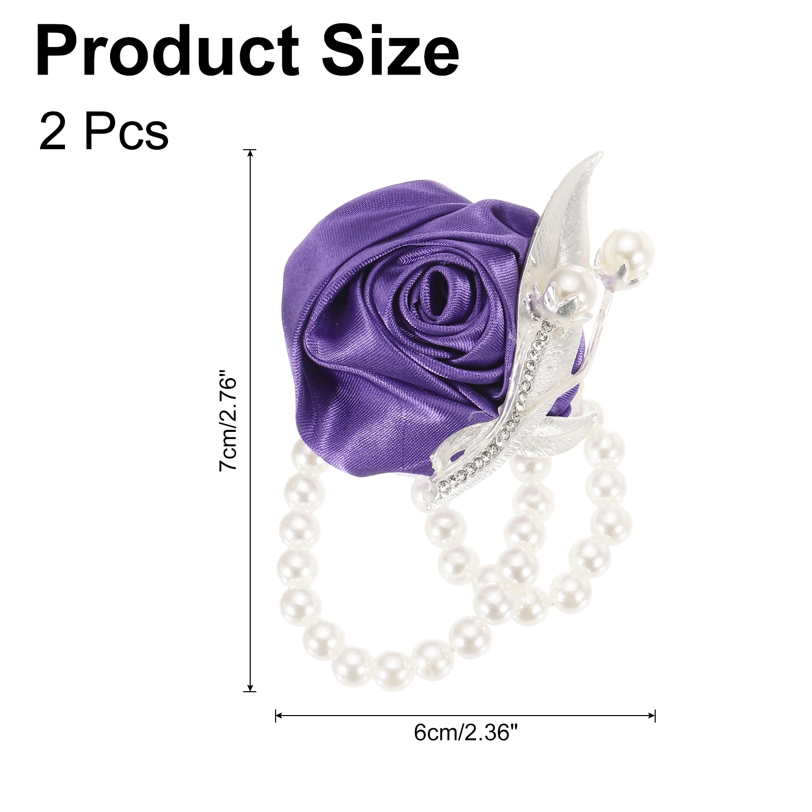 2Pcs Wrist Corsage Artificial Flower Bracelets, 2.4 x 2.8 Inch White