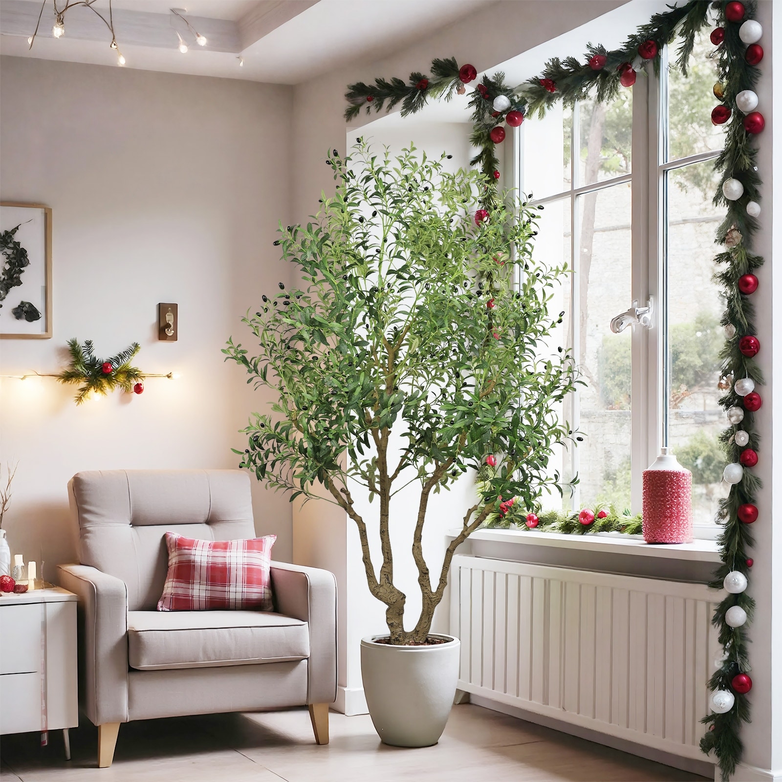 8FT Tall Artificial Olive Tree - Large Faux Potted Tree with Natural Trunk and Lifelike Olive Leaves and Fruit 1pc/set