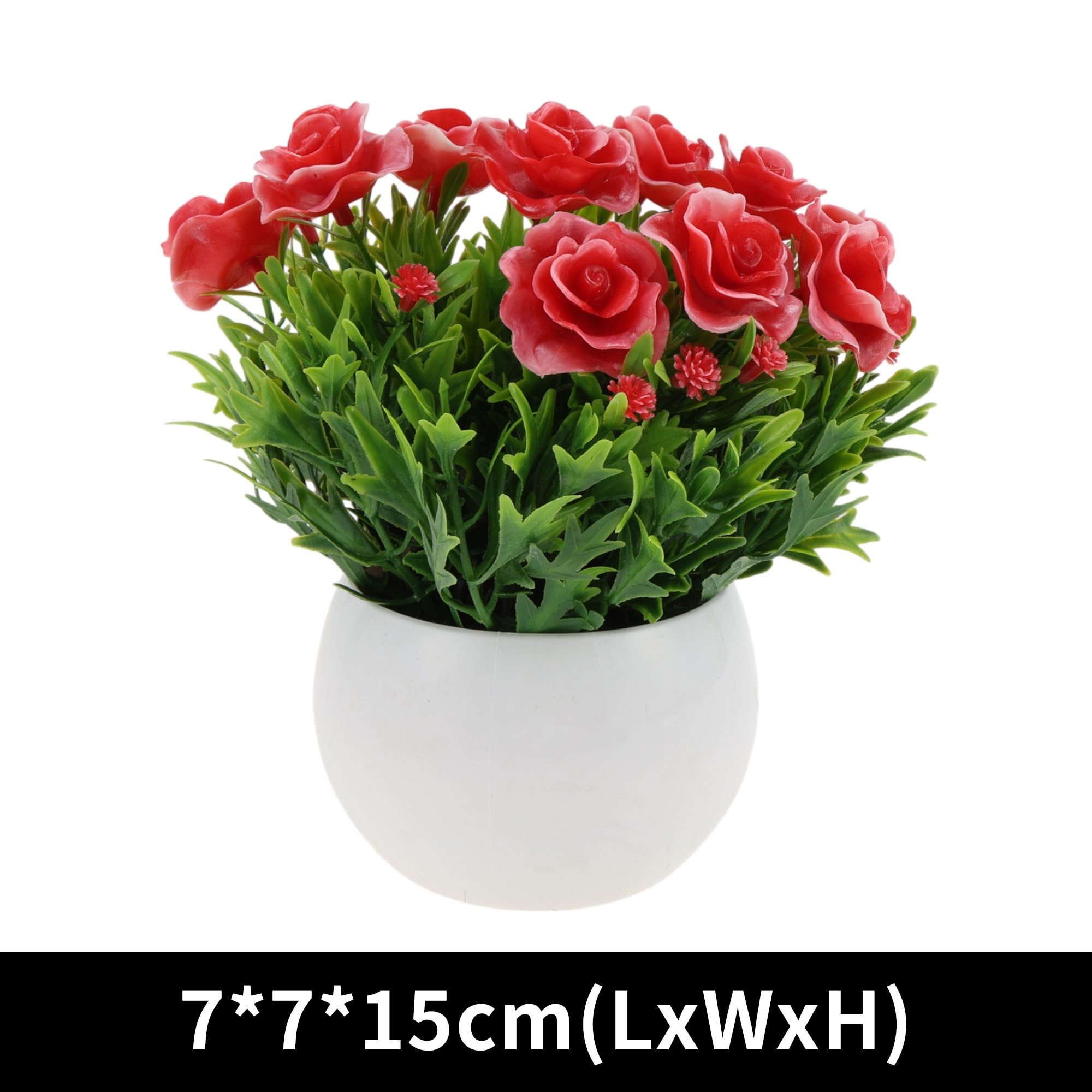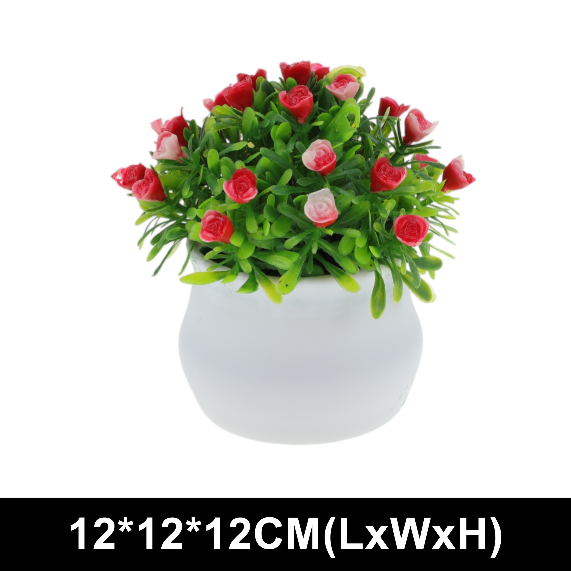 1 Pcs Faux Plants Solid Rose Artificial Potted Plant Plastic Red 12x12x12cm