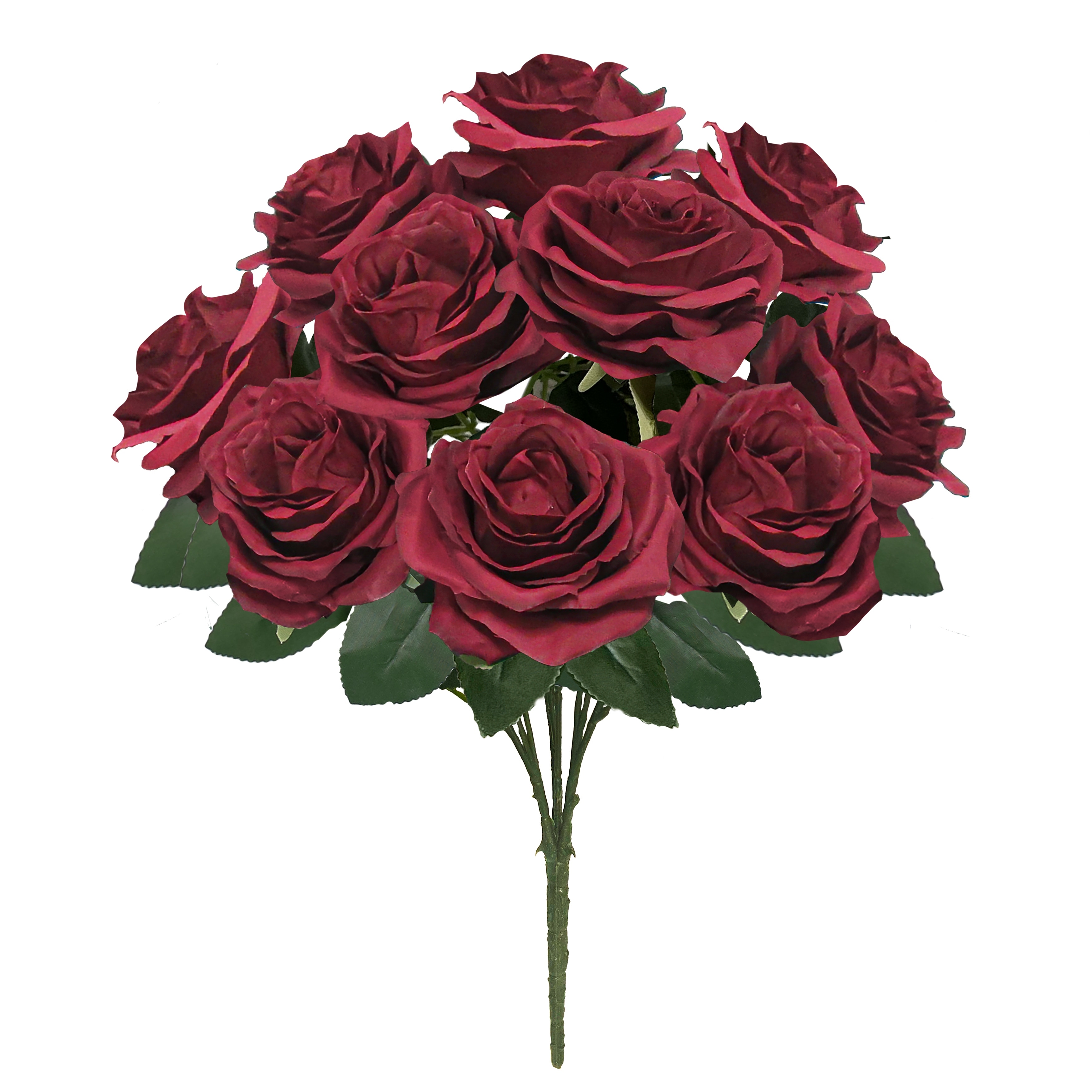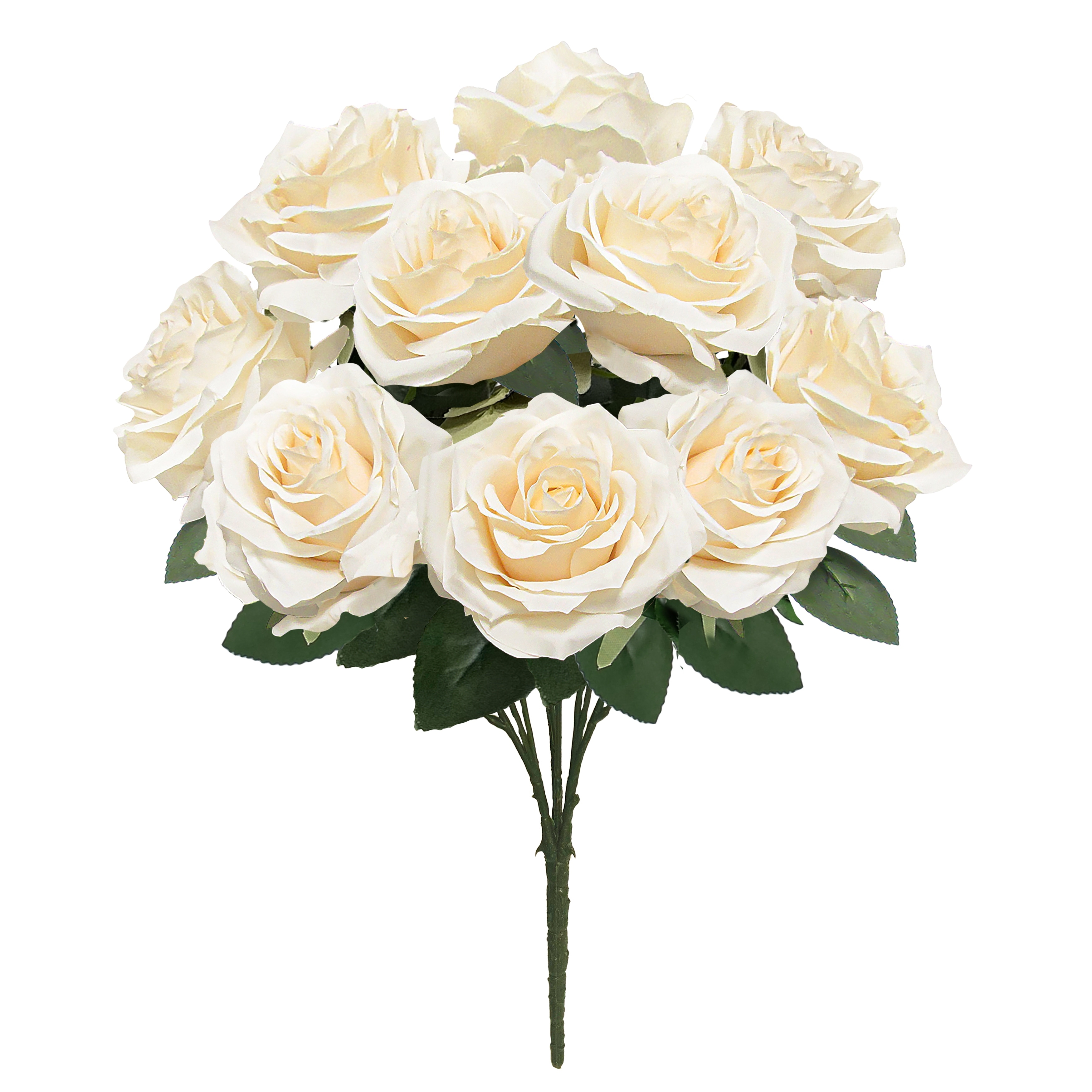 Set of 2 Artificial Queen Rose Flower Stem Bush Bouquet 18in
