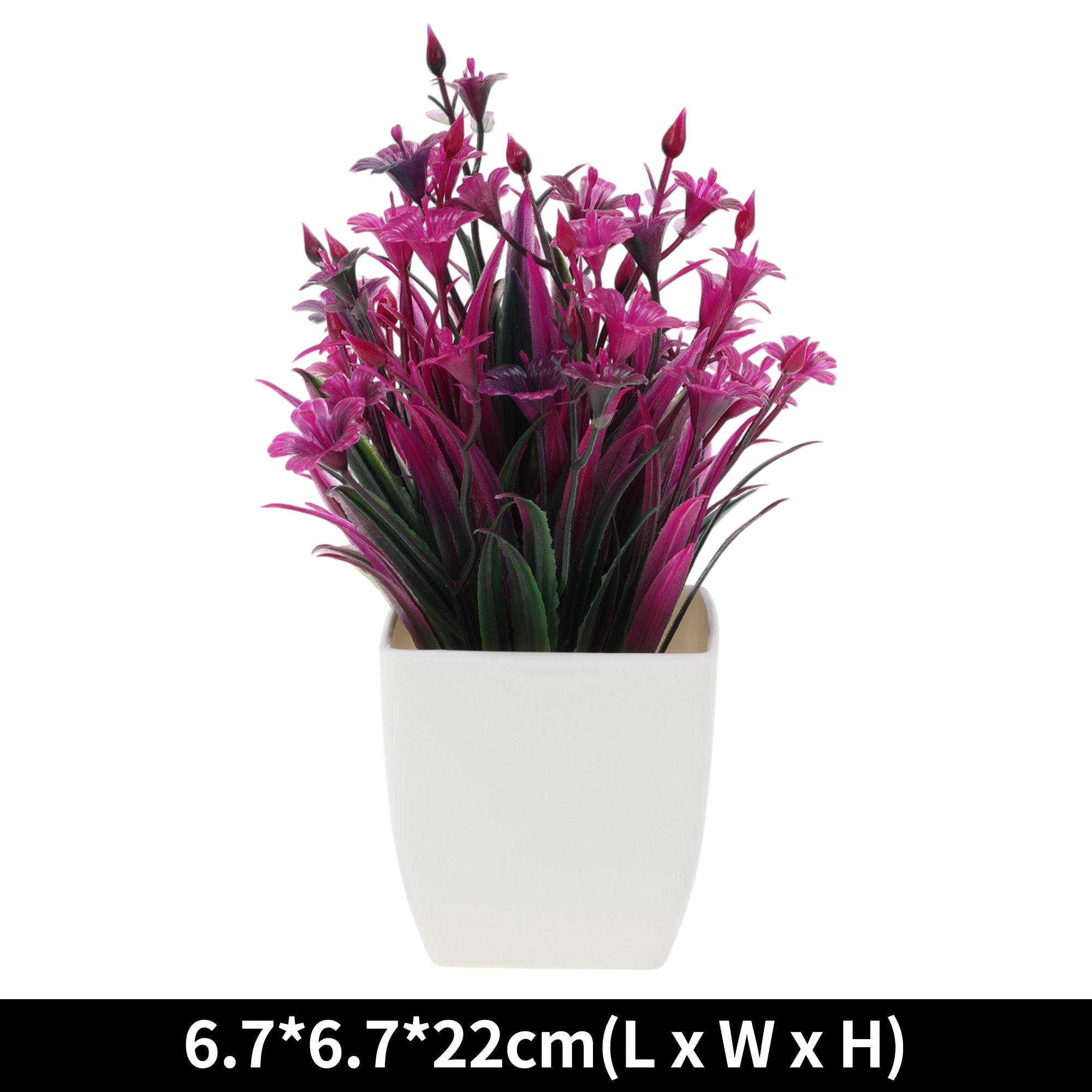1 Pcs Artificial Plants 17-Bud Square Pot Plum Blossom Artificial Arrangement Plastic Fuchsia 7.5x7.5x21cm