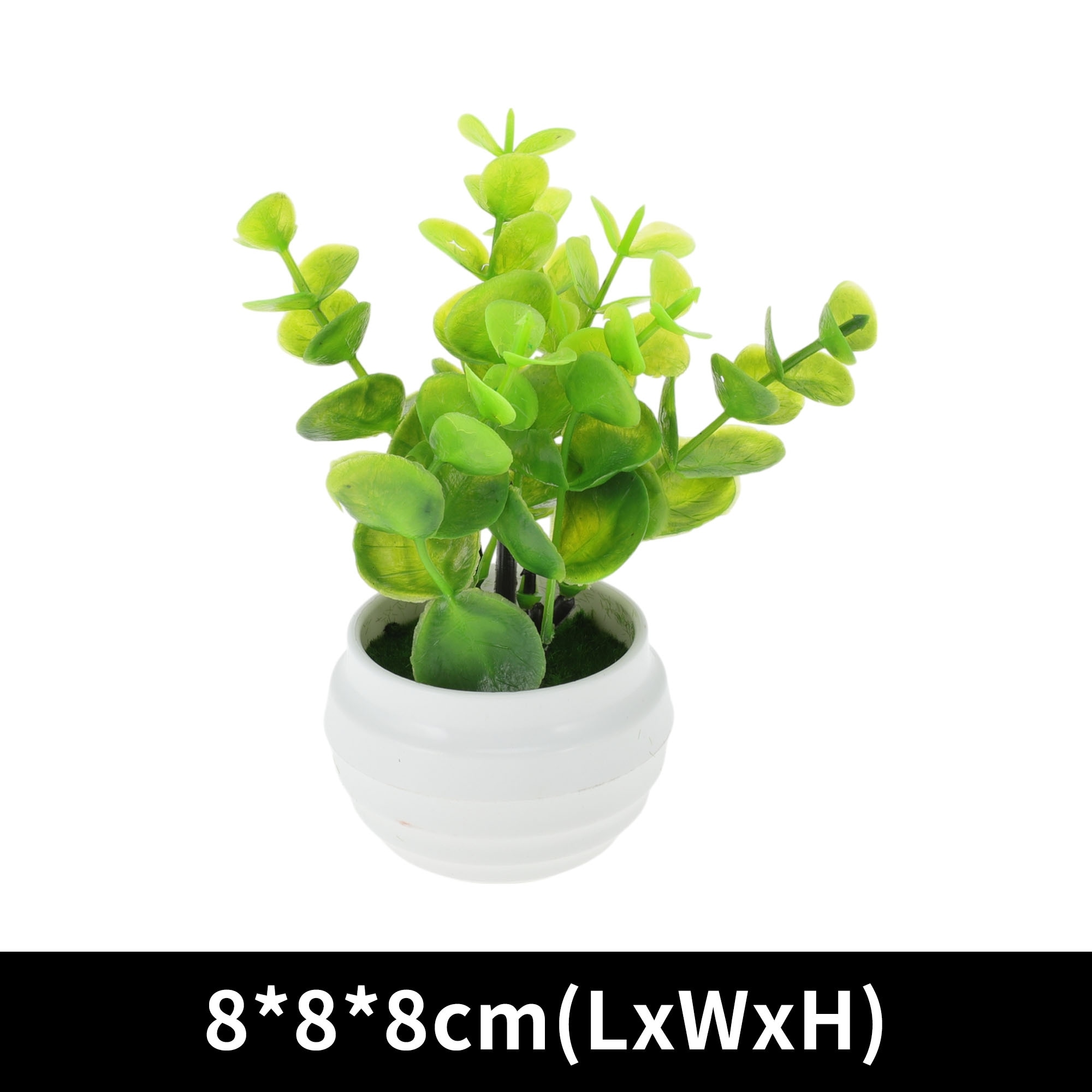 1 Pcs Artificial Tree Ribbed Pot Eucalyptus Plant Plastic Green 8x8x8cm