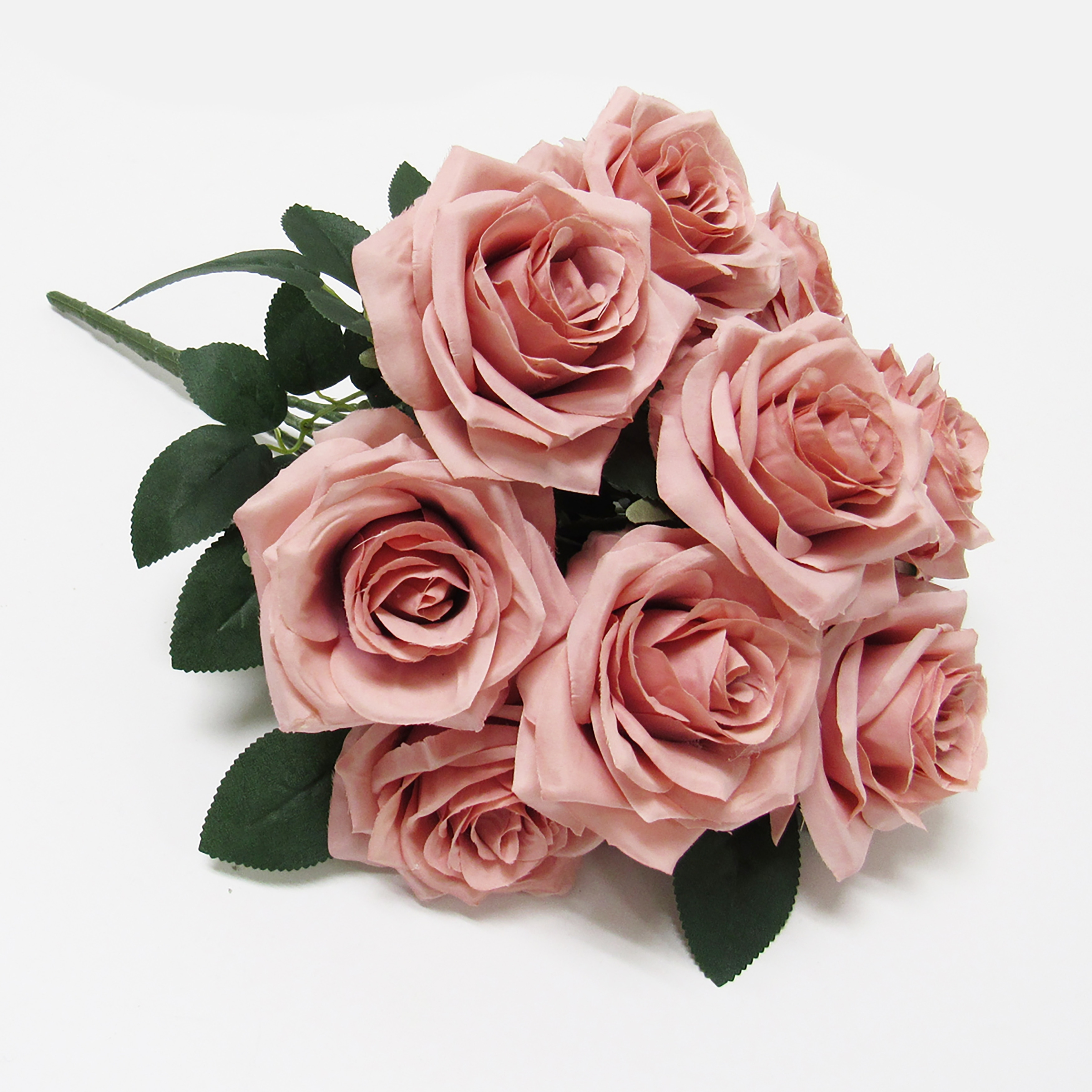 Set of 2 Artificial Queen Rose Flower Stem Bush Bouquet 18in