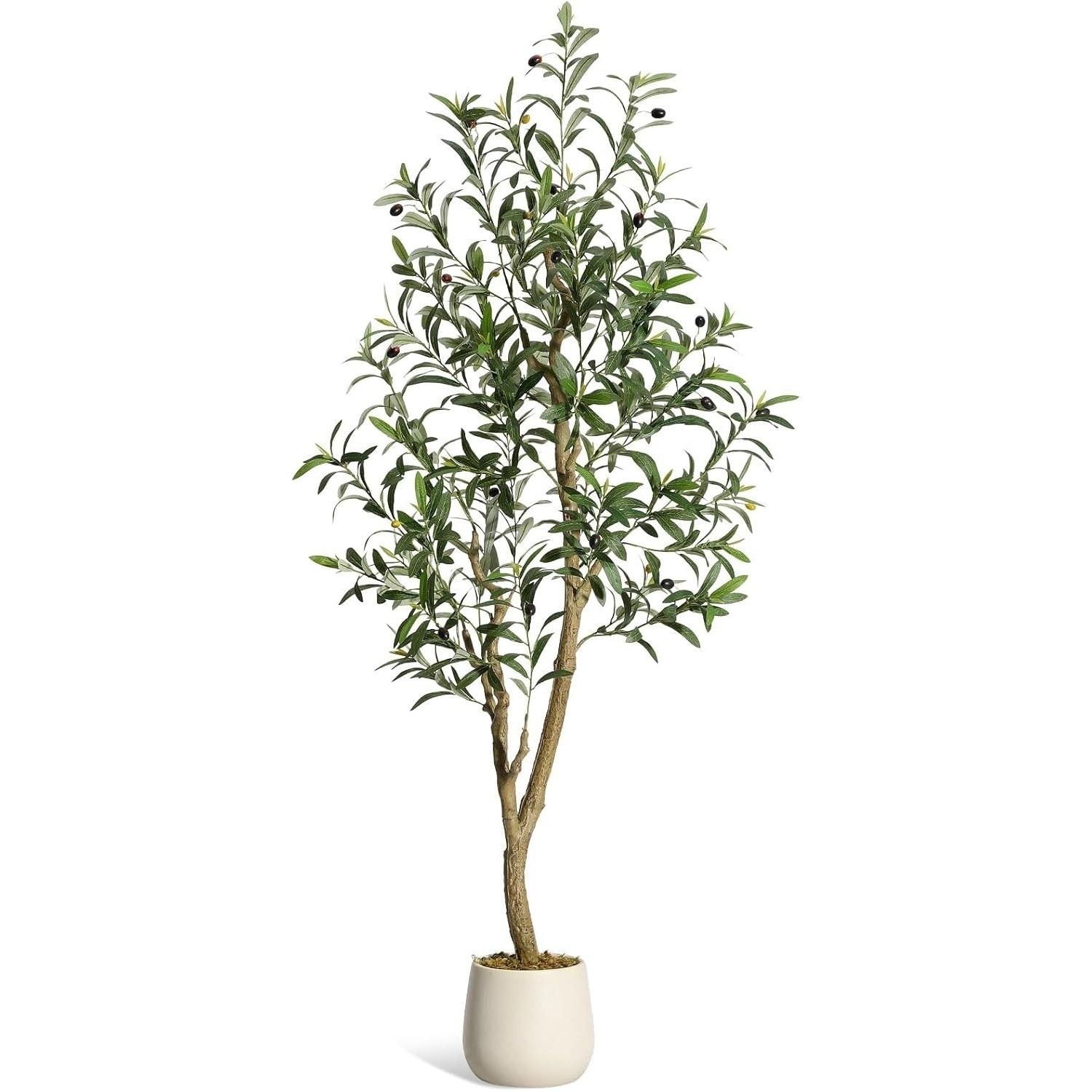 1 Pack 5FT Artificial Olive Tree with White Planter & Fruits