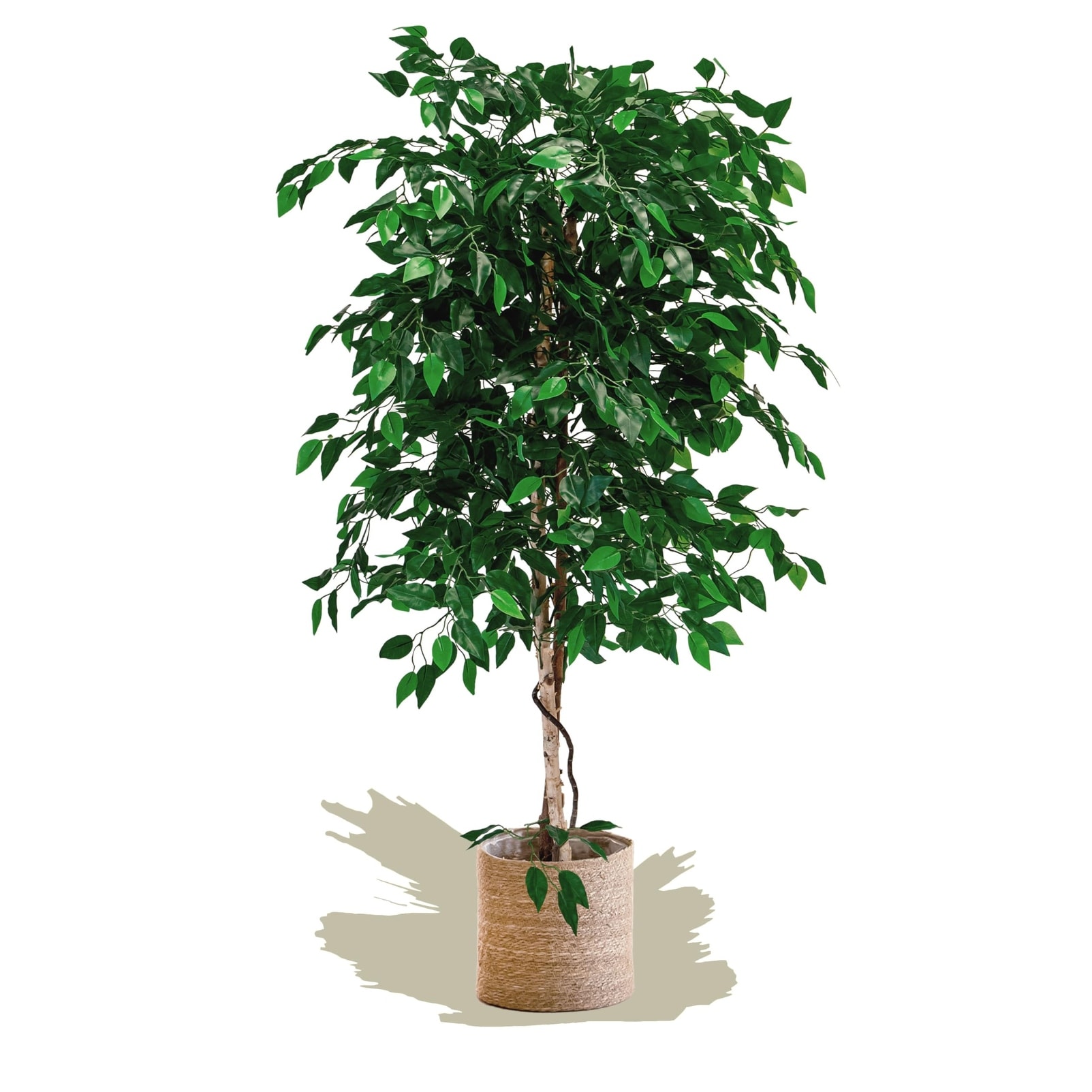 Artificial Ficus Tree 5FT Tall, Fake Tree with Natural Wood Trunk and Realistic Leaves,Faux Silk Plant Made