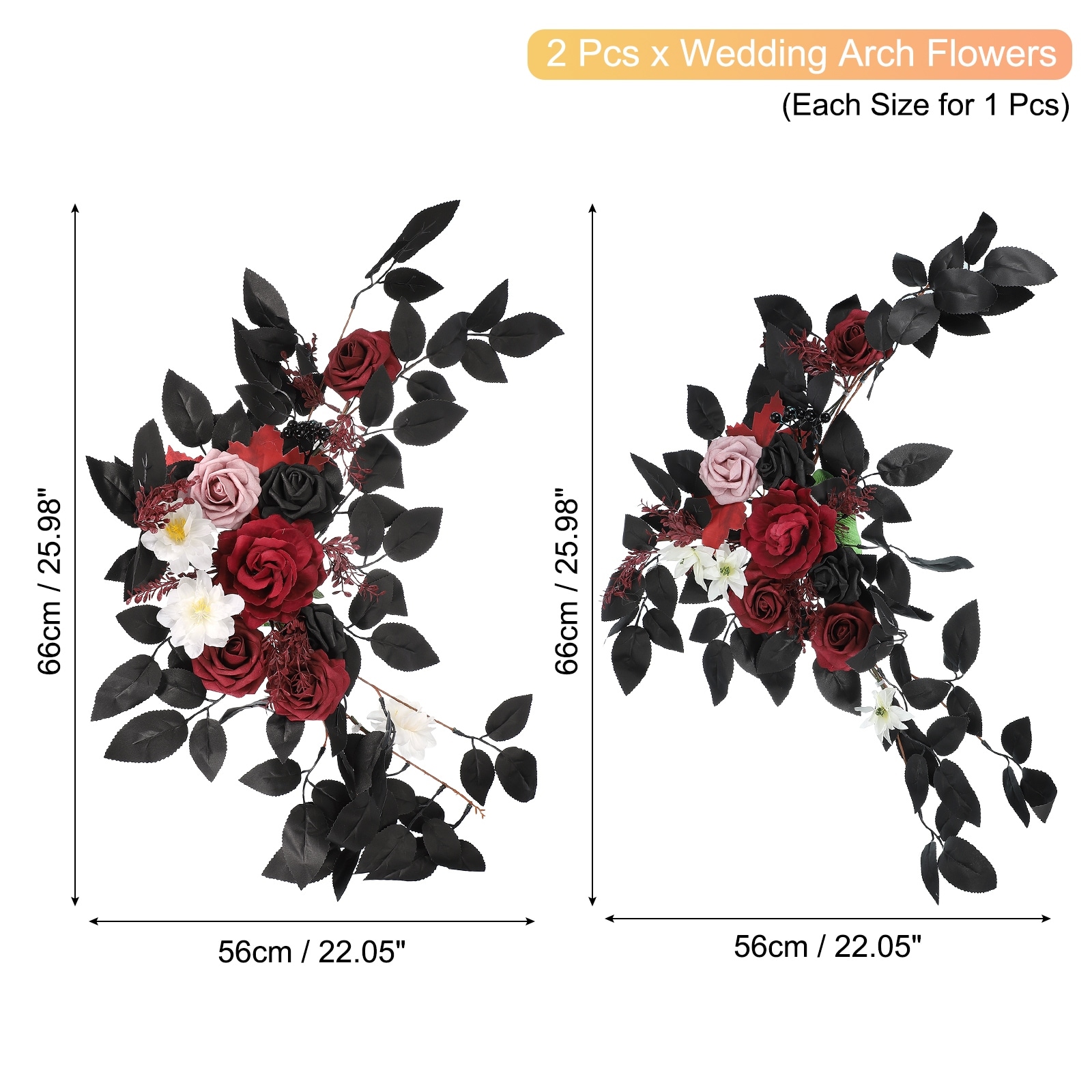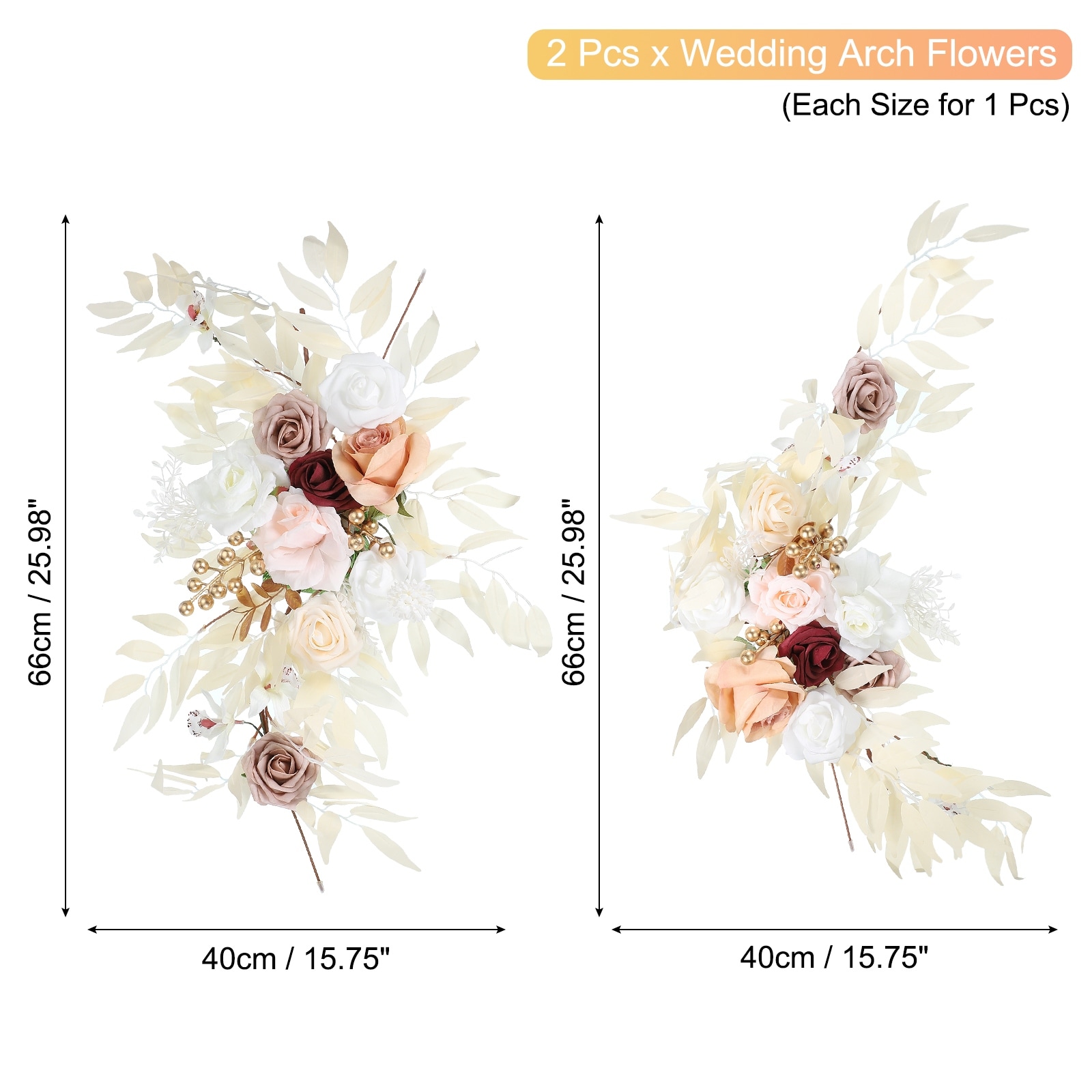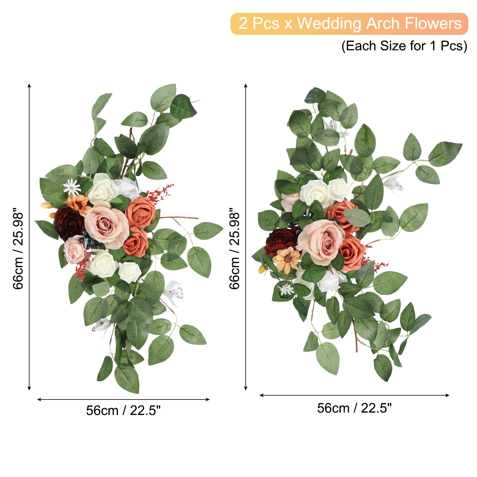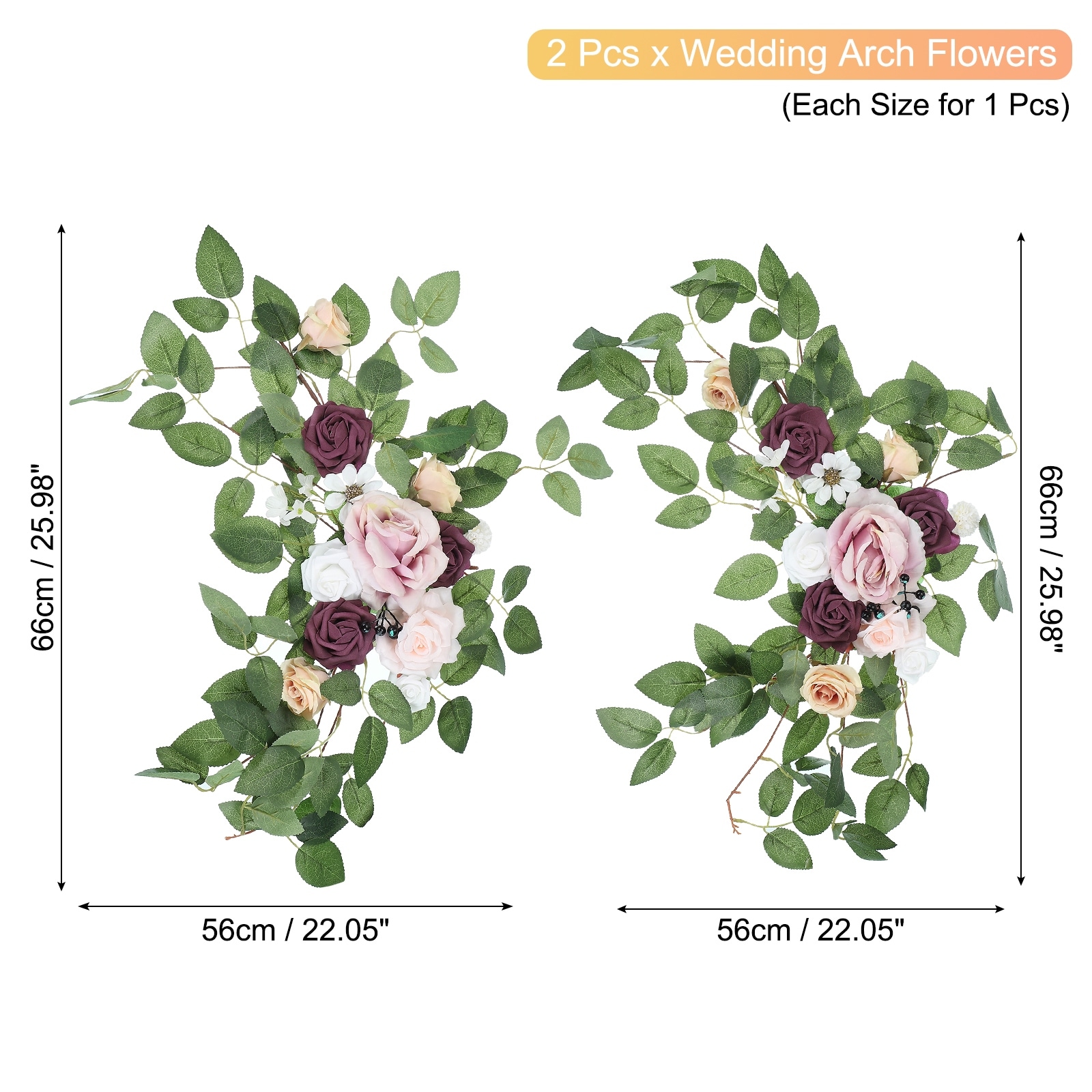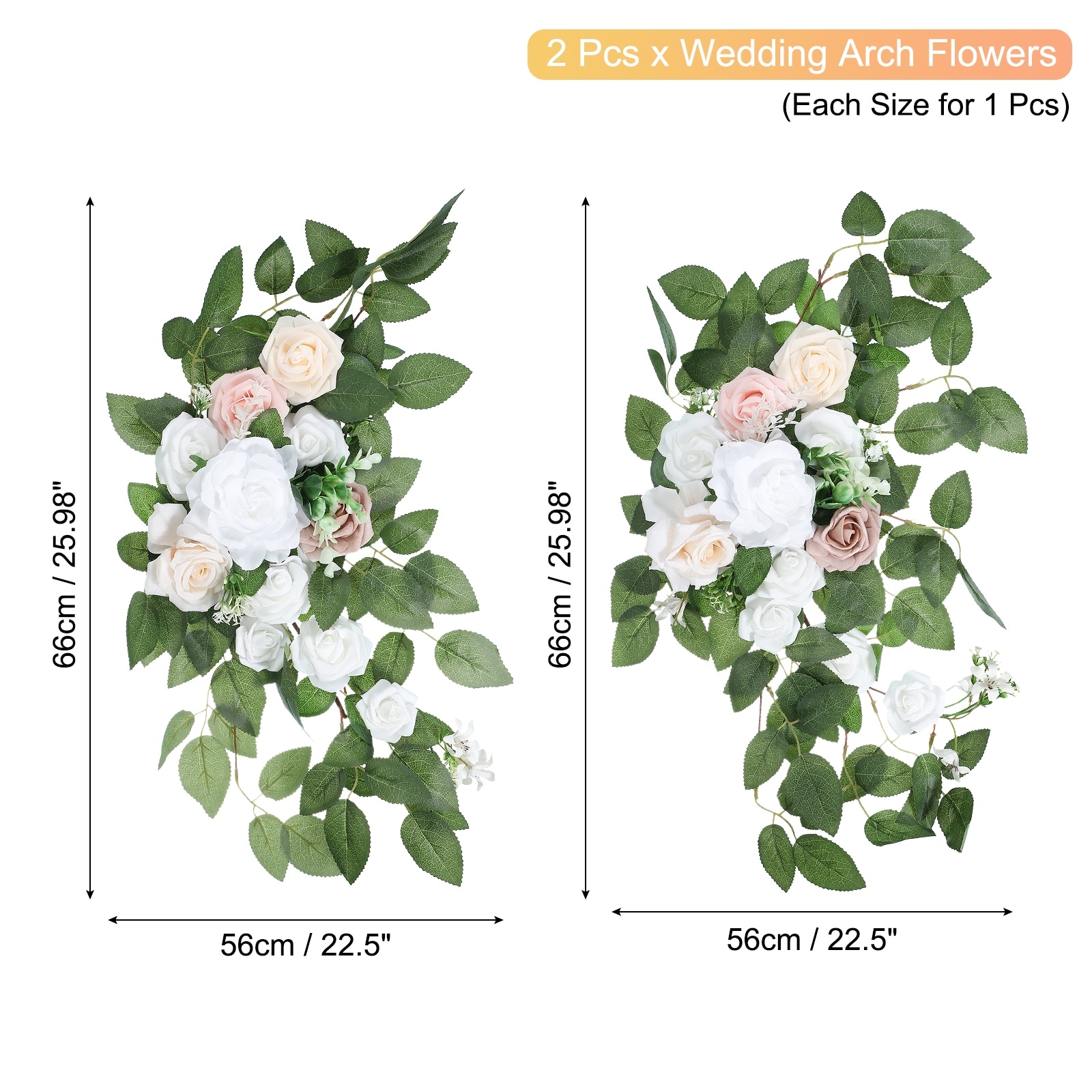 Wedding Arch Flowers, Artificial Silk Faux Rose Flower Swag Floral Swags Backdrop with Leaves - 26"