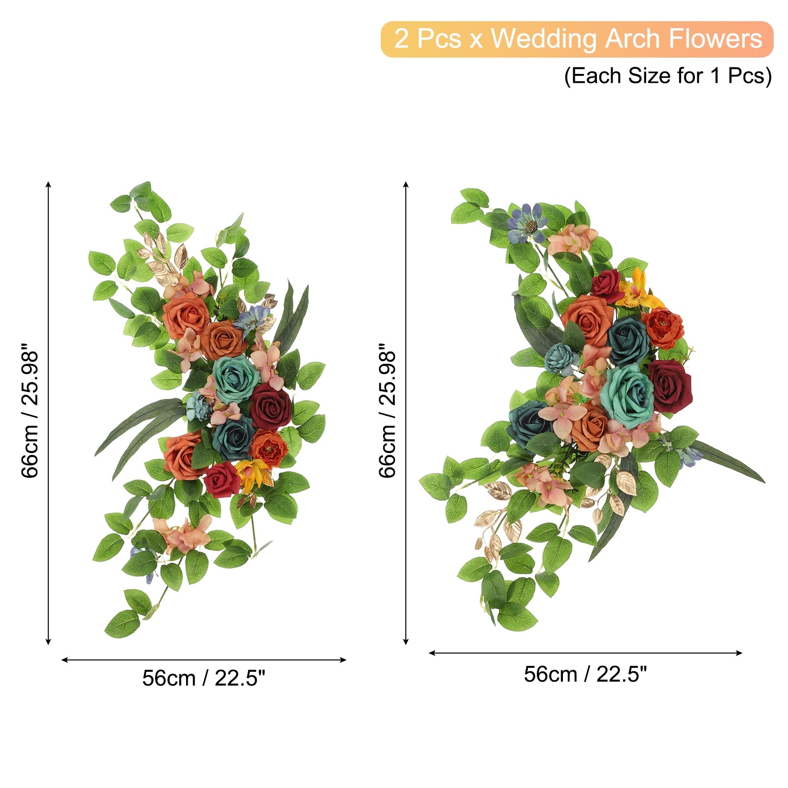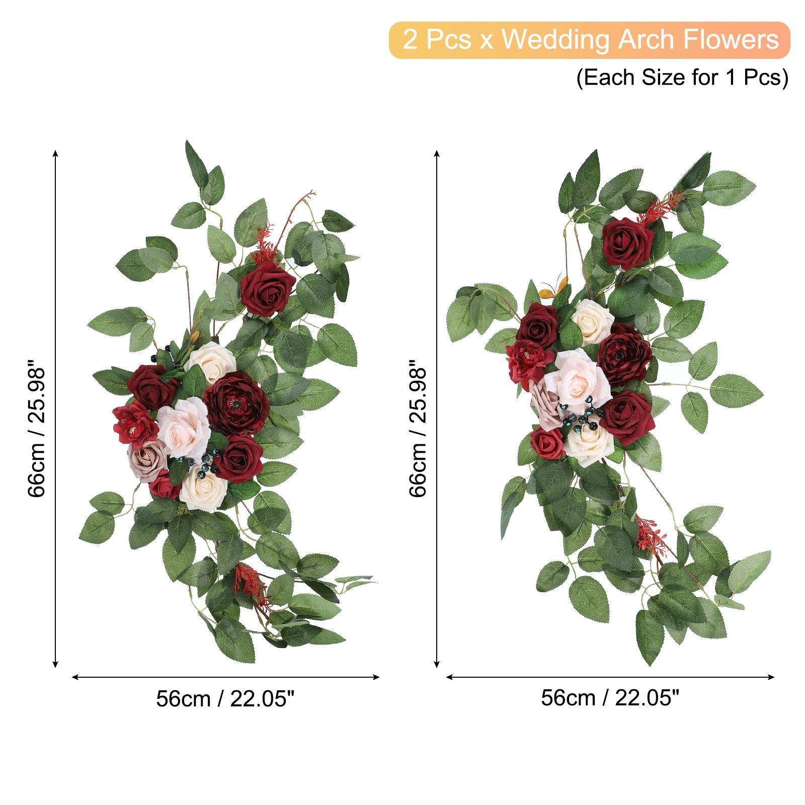 Wedding Arch Flowers, Artificial Silk Faux Rose Flower Swag Floral Swags Backdrop with Leaves - 26"