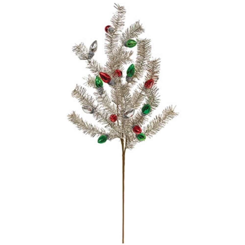 33 Inch Silver Spray with Red and Green Holiday Bulbs - 6” x 1.50” x 33”
