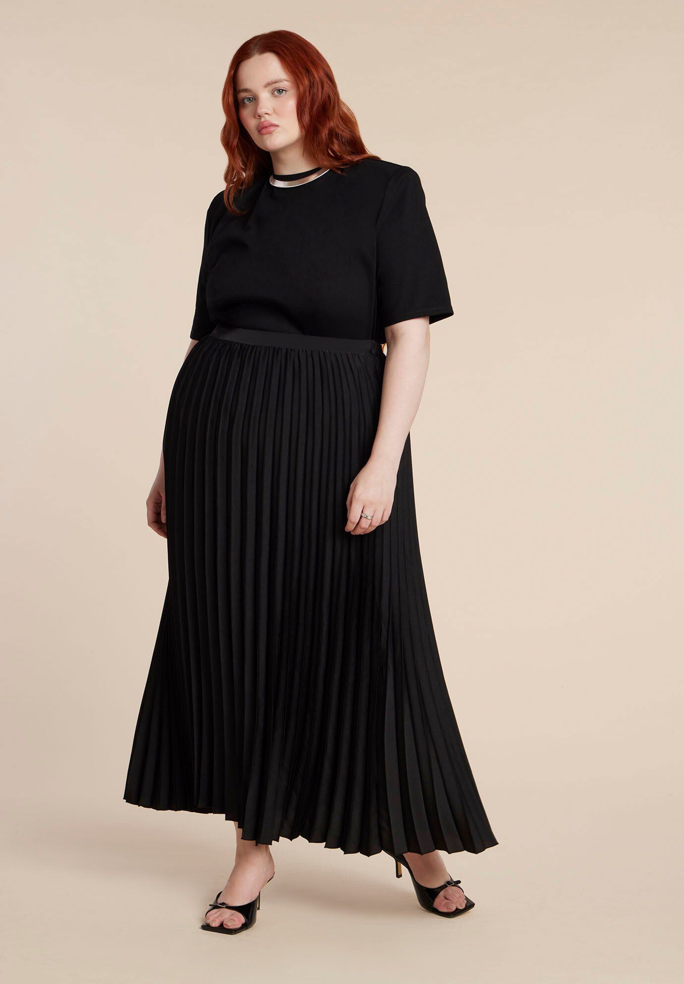 Plus Size Women's Pleated Maxi Satin Skirt by ELOQUII in Black Onyx (Size 22)