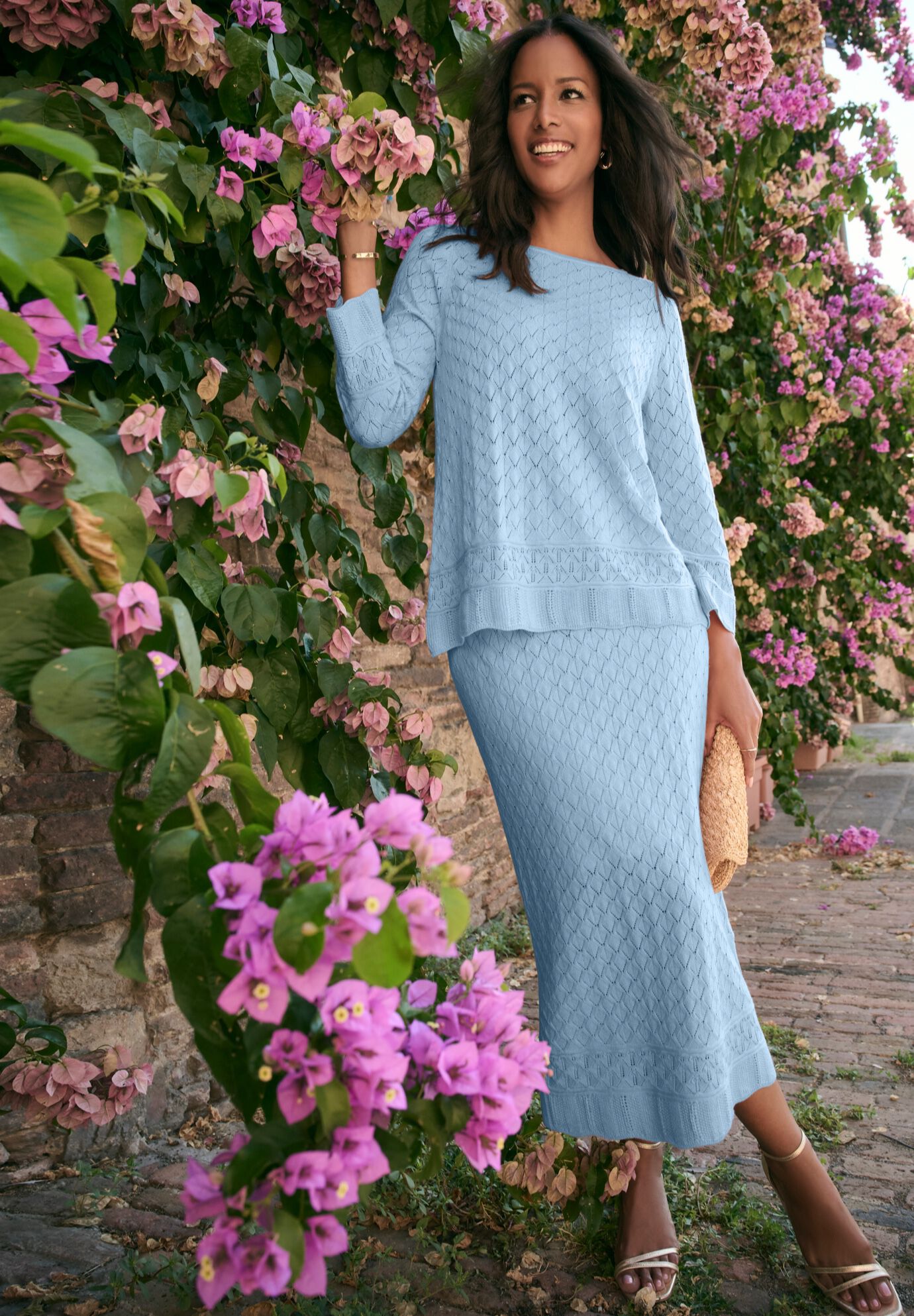 Plus Size Women's Pointelle Skirt by Roaman's in Pale Blue (Size 42/44)