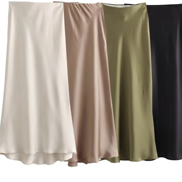 High Waist Satin Skirt For Women, Elegant Black Midi Skirt For Office army Green l