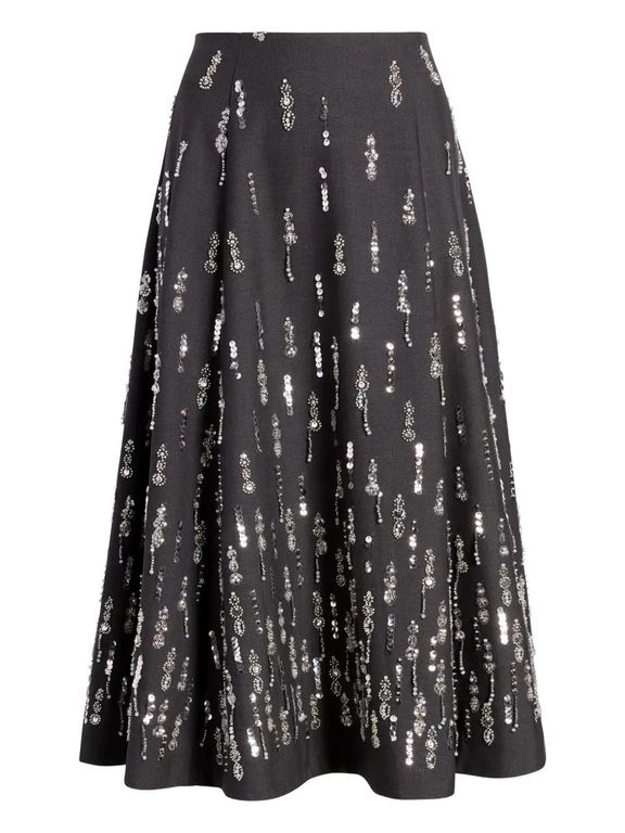 Selene Embellished Midi Skirt - Gray - Cinq À Sept Skirts