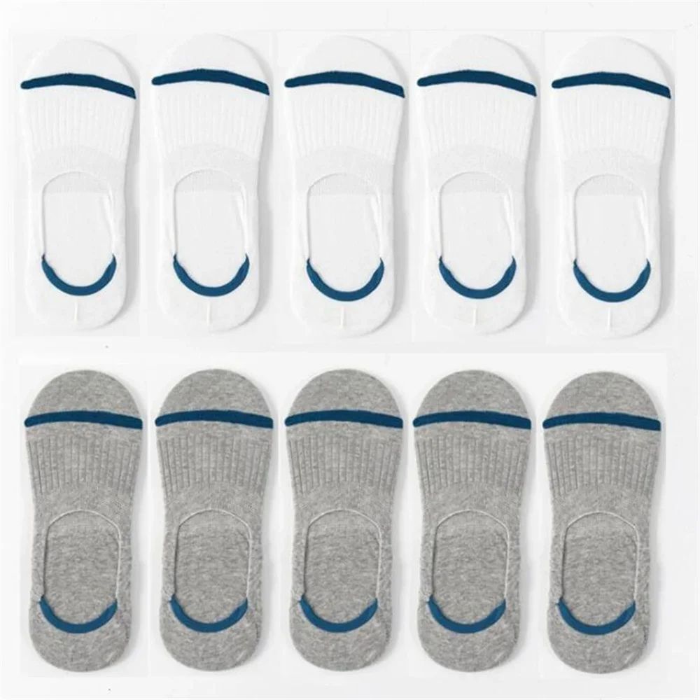 Men Cotton Boat Socks Summer, Silicone Non Slip Invisible Thin Sweat Absorbing Male Ankle Sock Slippers Meias 5 White 5 Gray