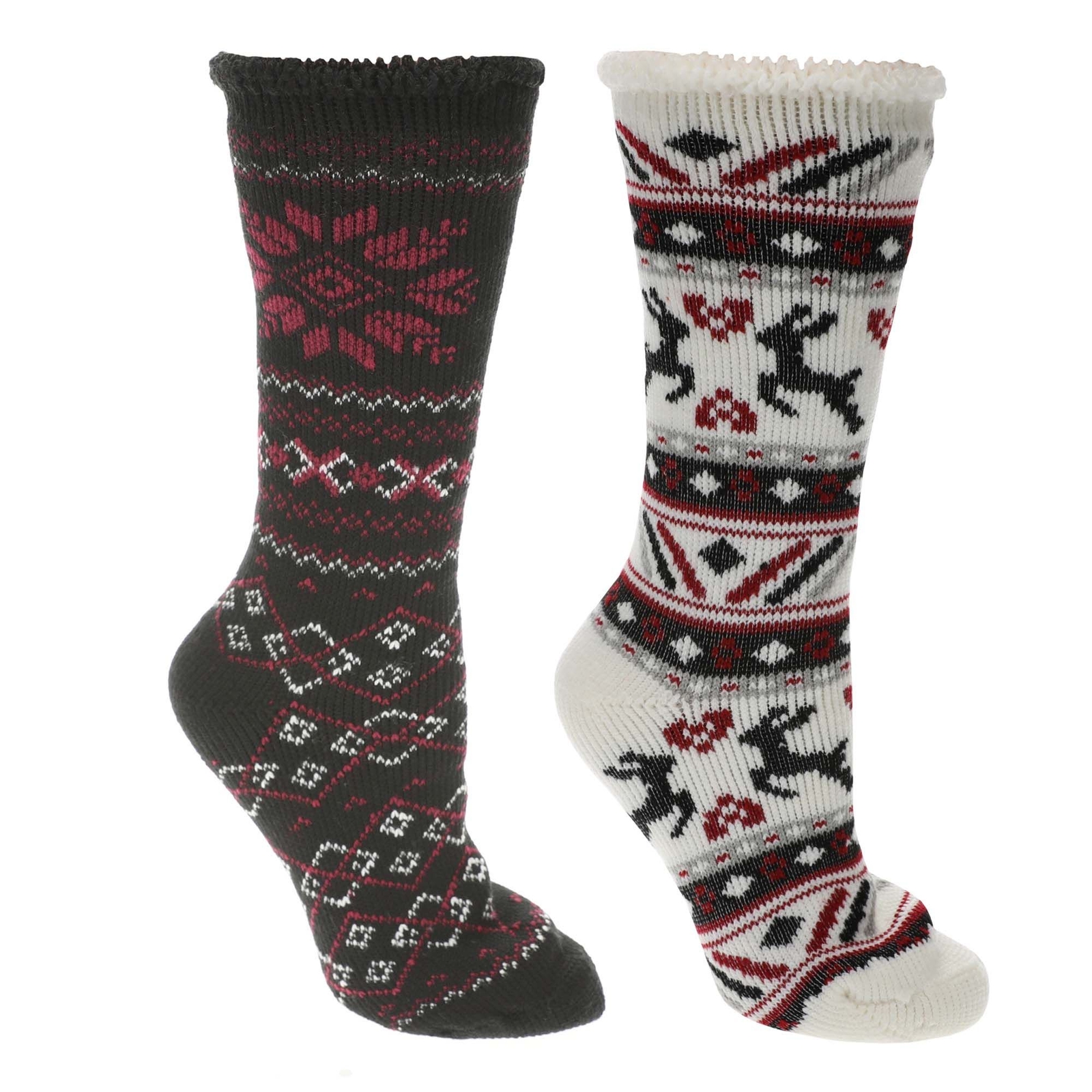 MUK LUKS Women's Heat Retainer Sock 2-Pack Size One Size Black/Red/Ivory