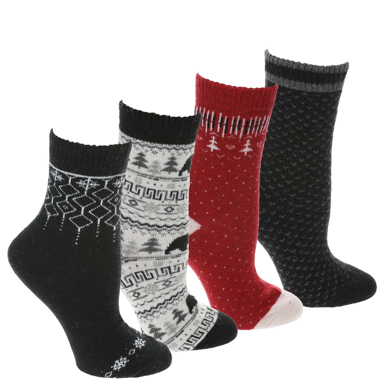 MUK LUKS Women's 4-Pack Holiday Boot Socks Size One Size Ivory/Black/Red