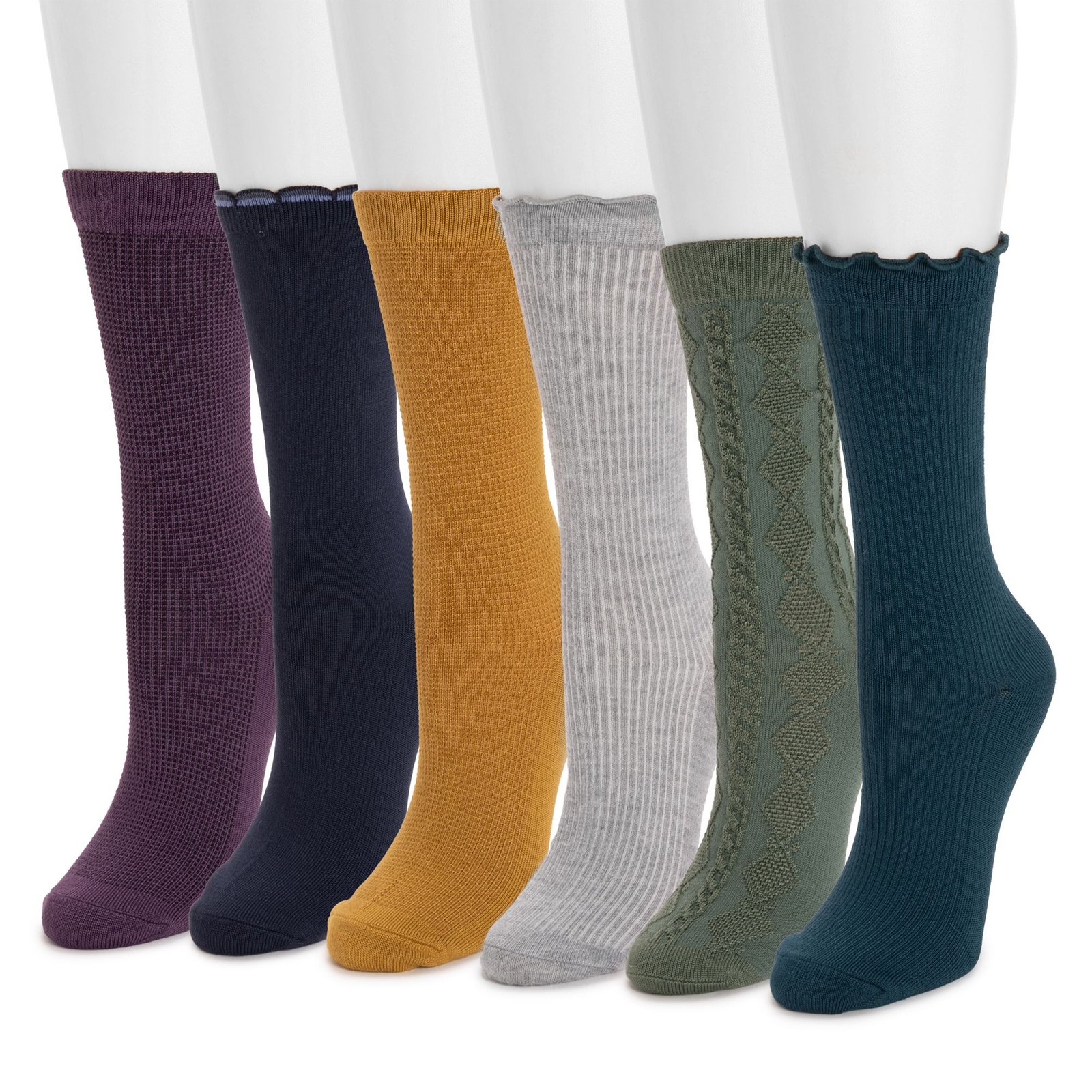 MUK LUKS Women's Whisper Soft 8" Crew Socks 6-Pack Size One Size Multi