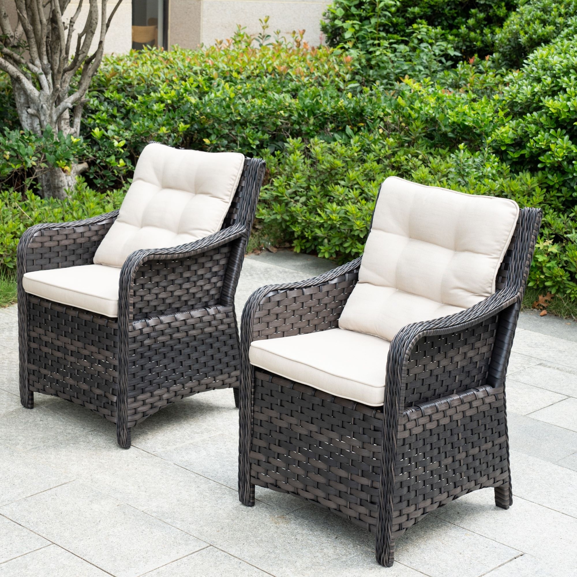 Brown Wicker Outdoor Patio Chair with Cushion (Set of 2)