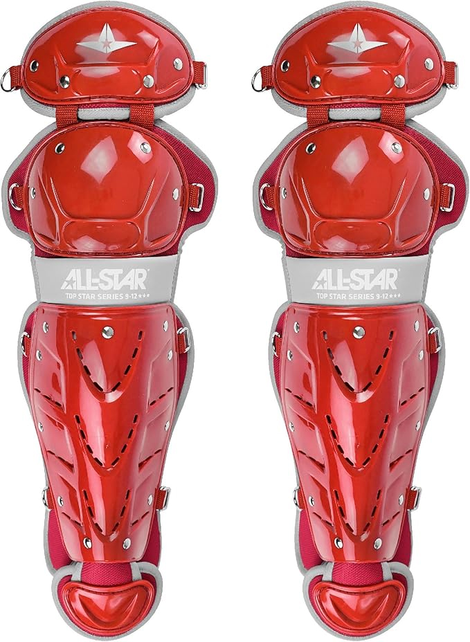 All Star Top Star Catcher's Leg Guards - Ages 7-9 Scarlet