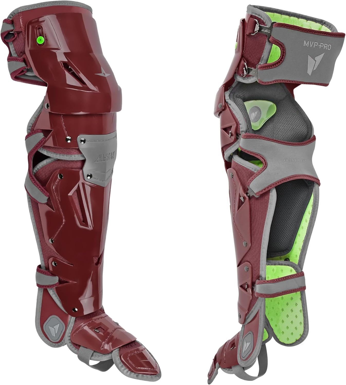 All Star MVP-Pro Adult Baseball Catcher's Leg Guards Maroon/Graphite