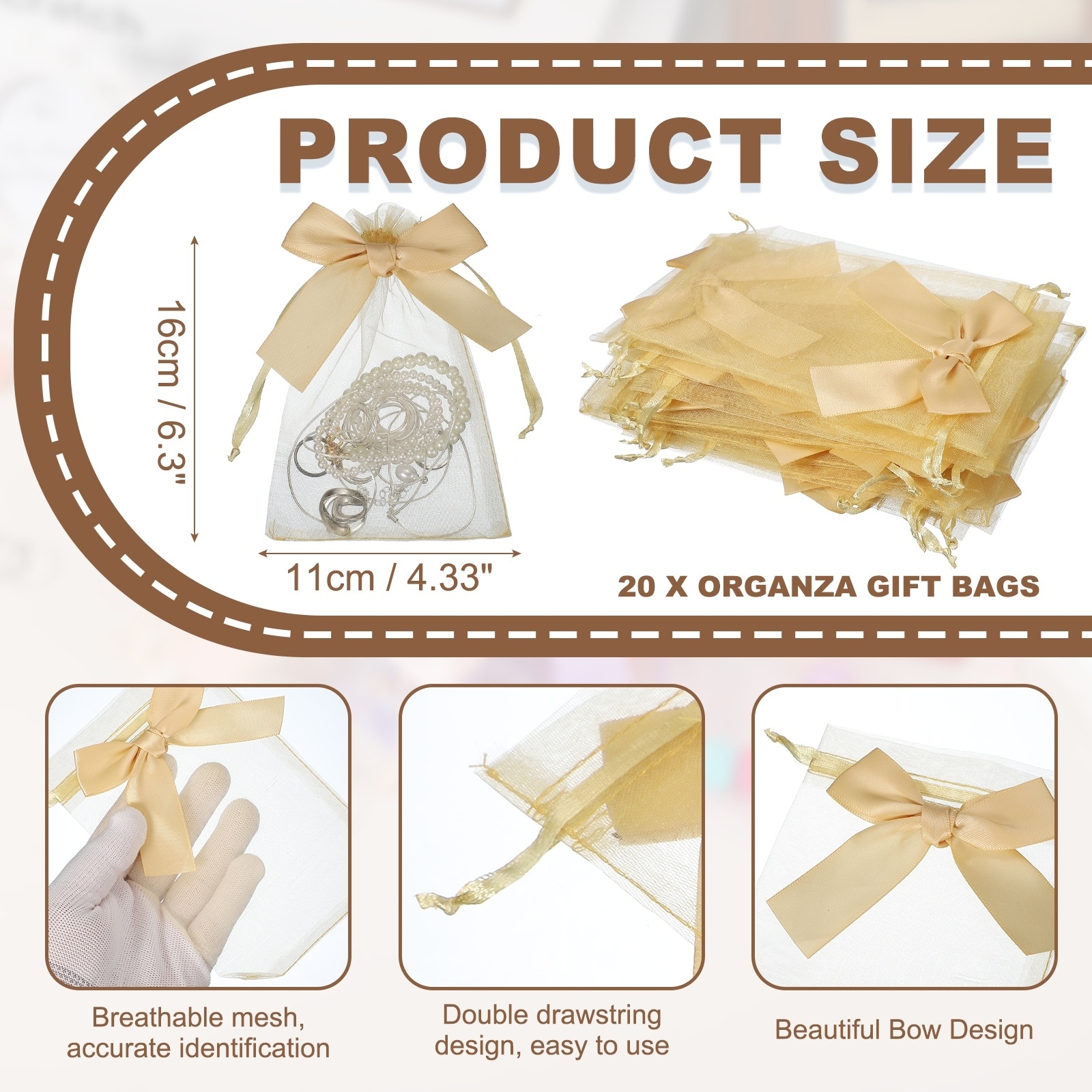 20 Pcs Bow Organza Gift Bags, Wedding Favor Bag(3.5x4.7 Inch Pink)