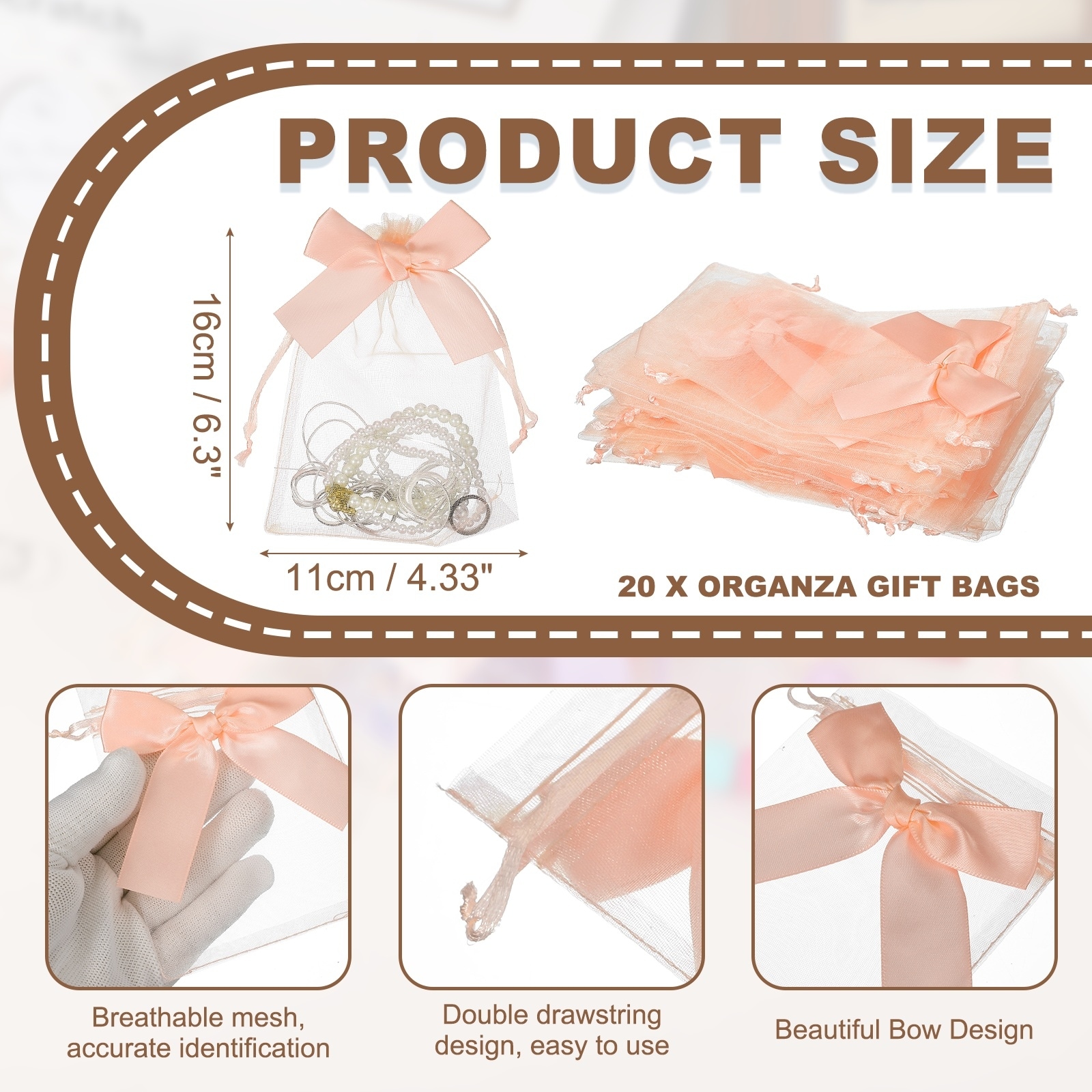 20 Pcs Bow Organza Gift Bags, Wedding Favor Bag(3.5x4.7 Inch Pink)