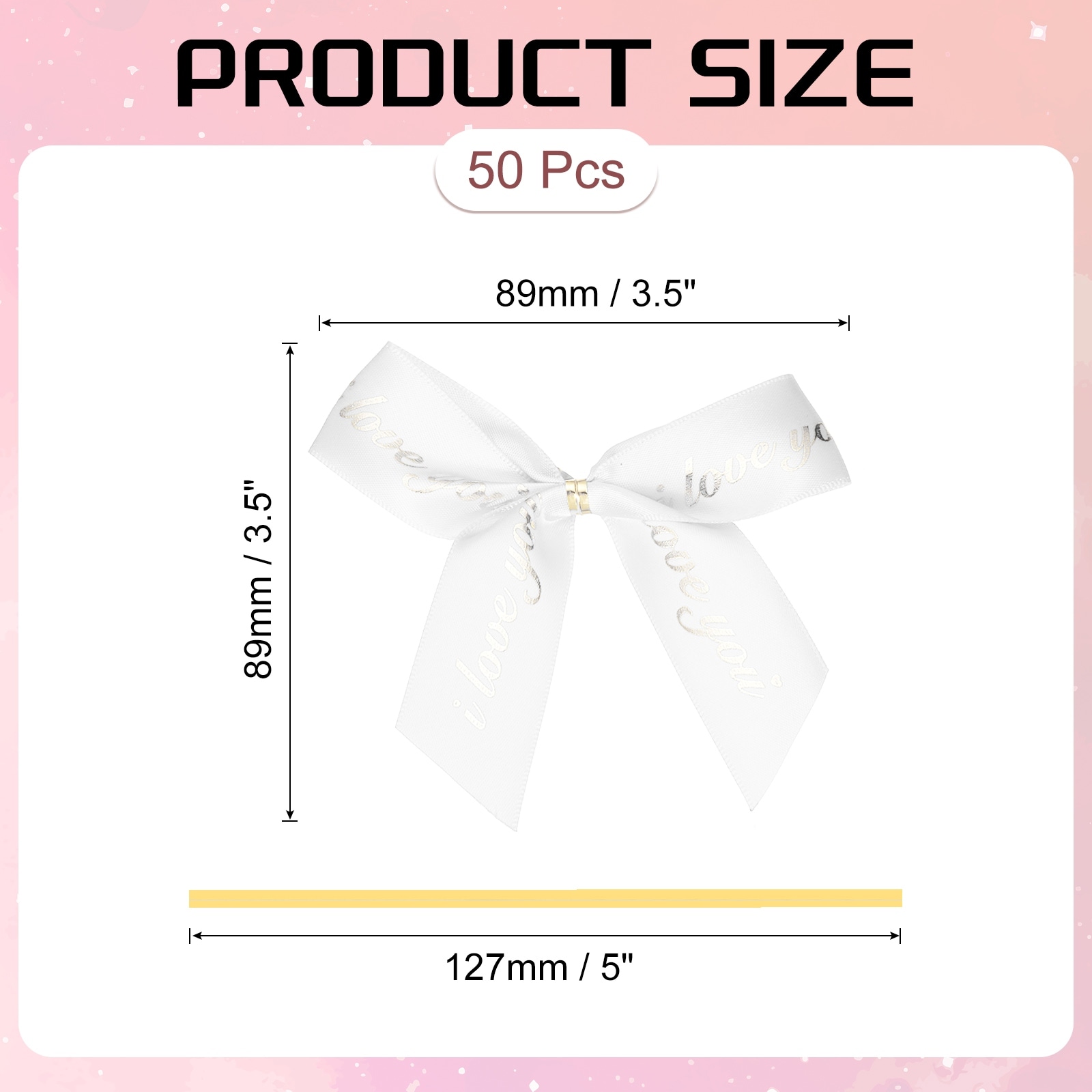 I Love You Ribbon Bows Twist Tie Bows Craft Bows for DIY Gift Wrapping Wedding Birthday Valentine's Day Mother's Day - 3.5"