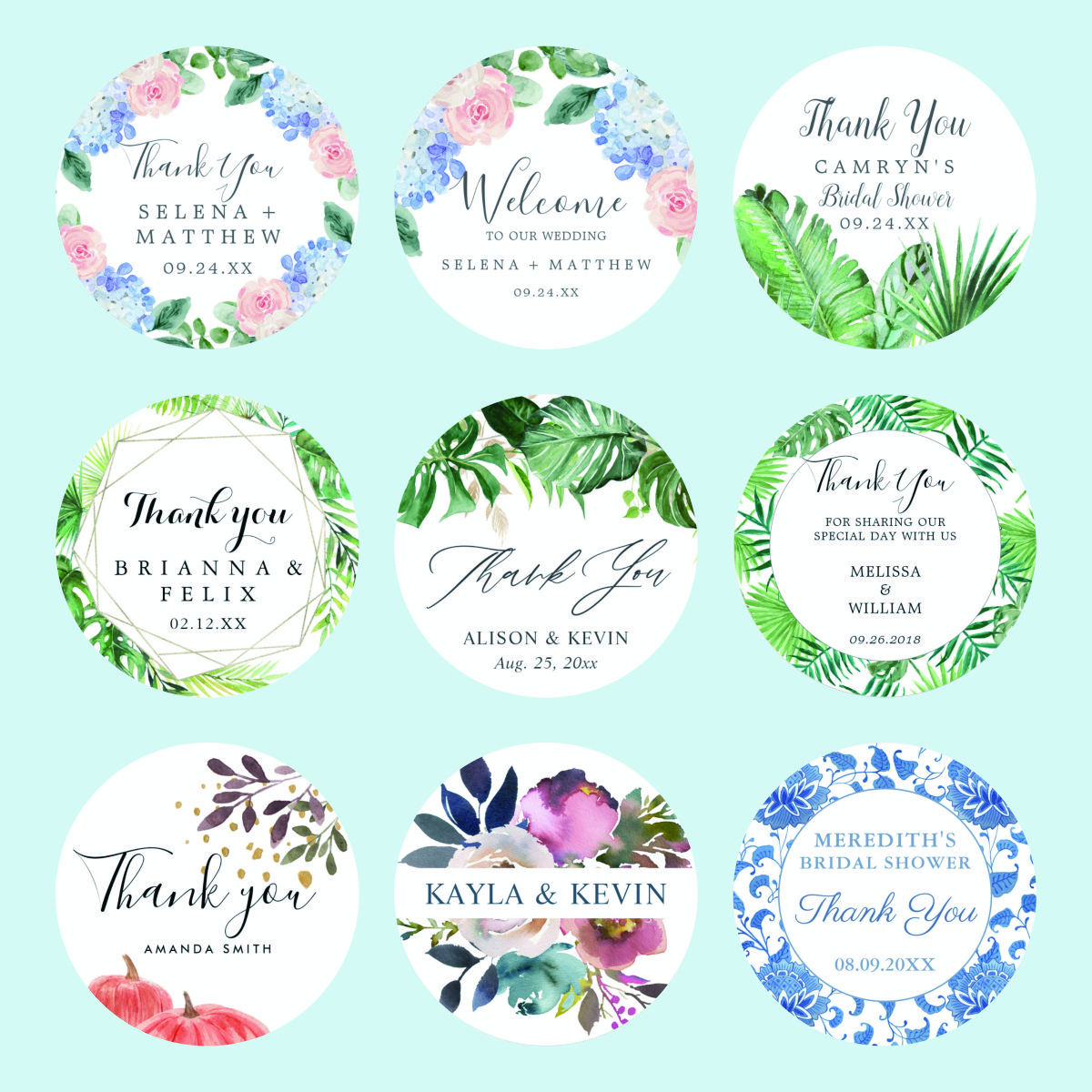 Custom Round Label Stickers, Personalized Stickers Of Name Date Thank You, For Wedding Party Favors, Bridal Shower Gifts design 23 18cm 100pcs