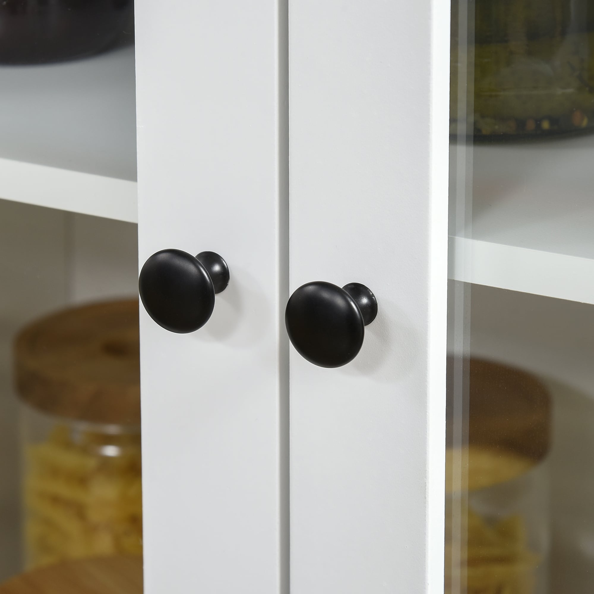 62"LX36"H Solid Wood Kitchen Pantry Sideboard Buffet Cabinet Storage with with Glass Doors