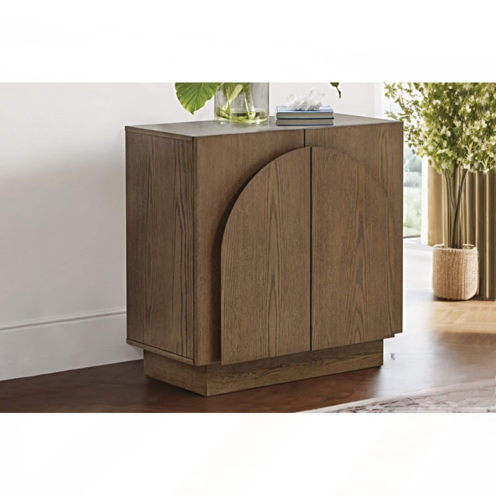 Mid-Century Modern Oak Wood Sideboard Buffet with Arched Doors for Living Room or Kitchen Storage