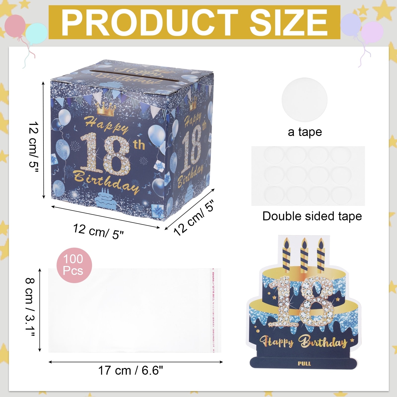 Birthday Money Box for Cash Gift, Birthday Money Pull Box with 100pcs Transparent Bags for Birthday Card Party Decorations