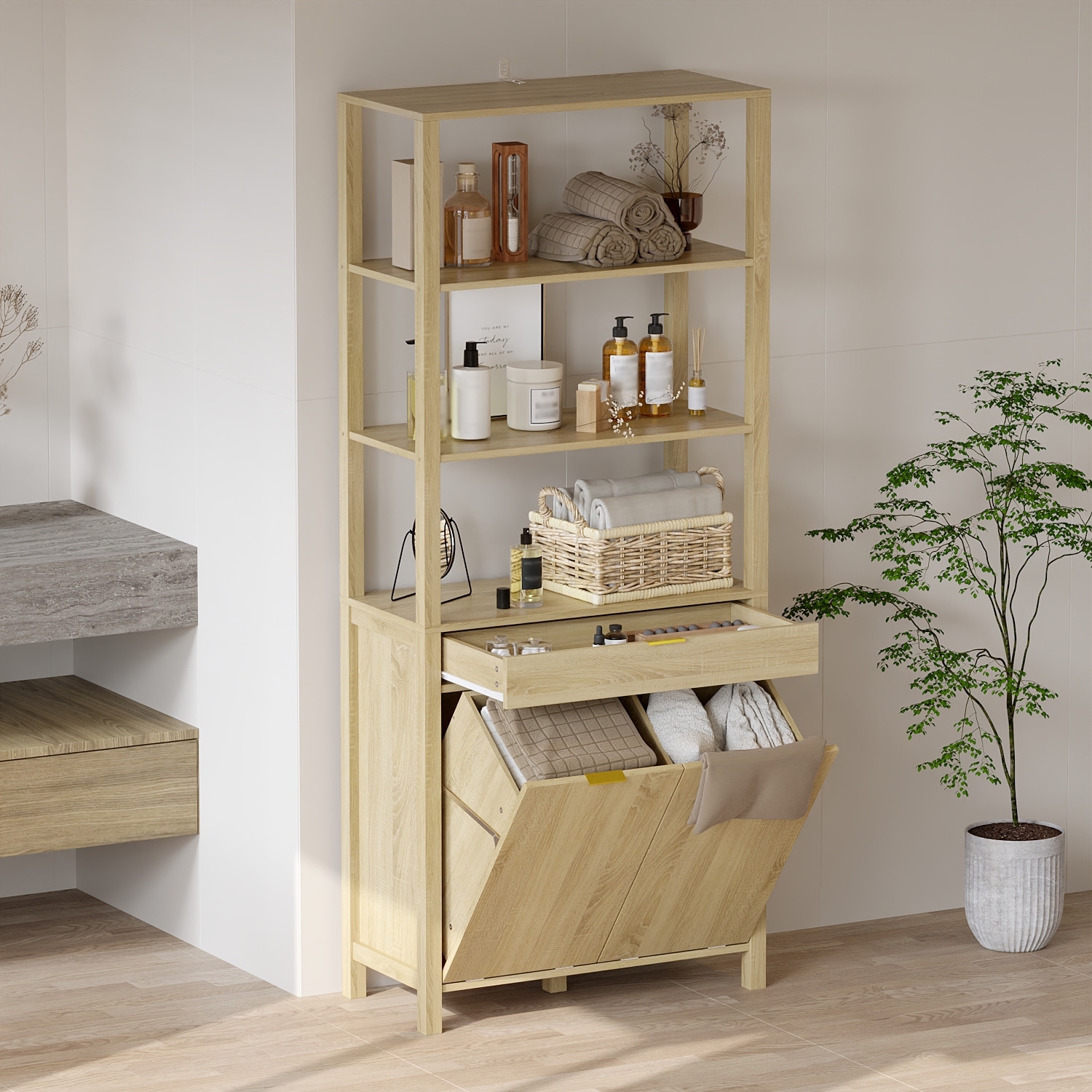 Linen Tower with Drawer and Tilt-Out Hampers, Multifunction Organizer