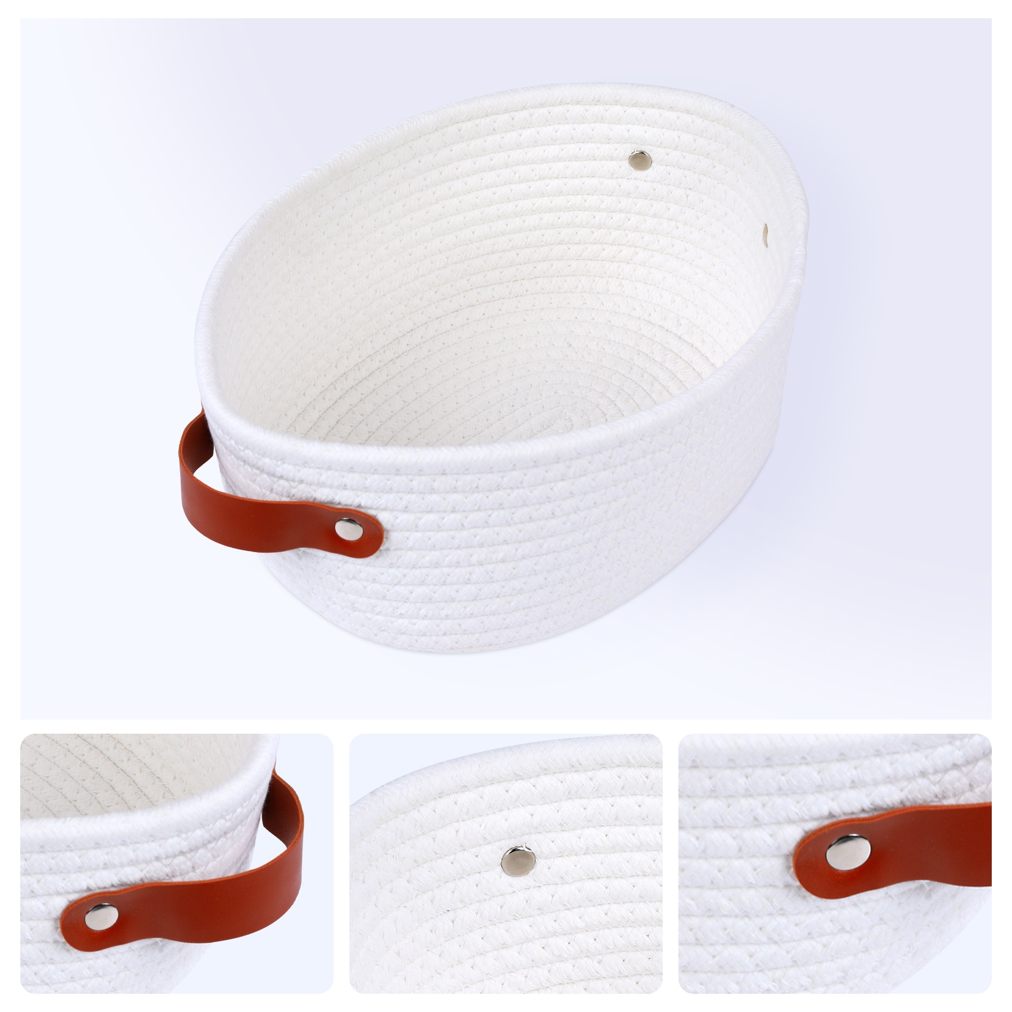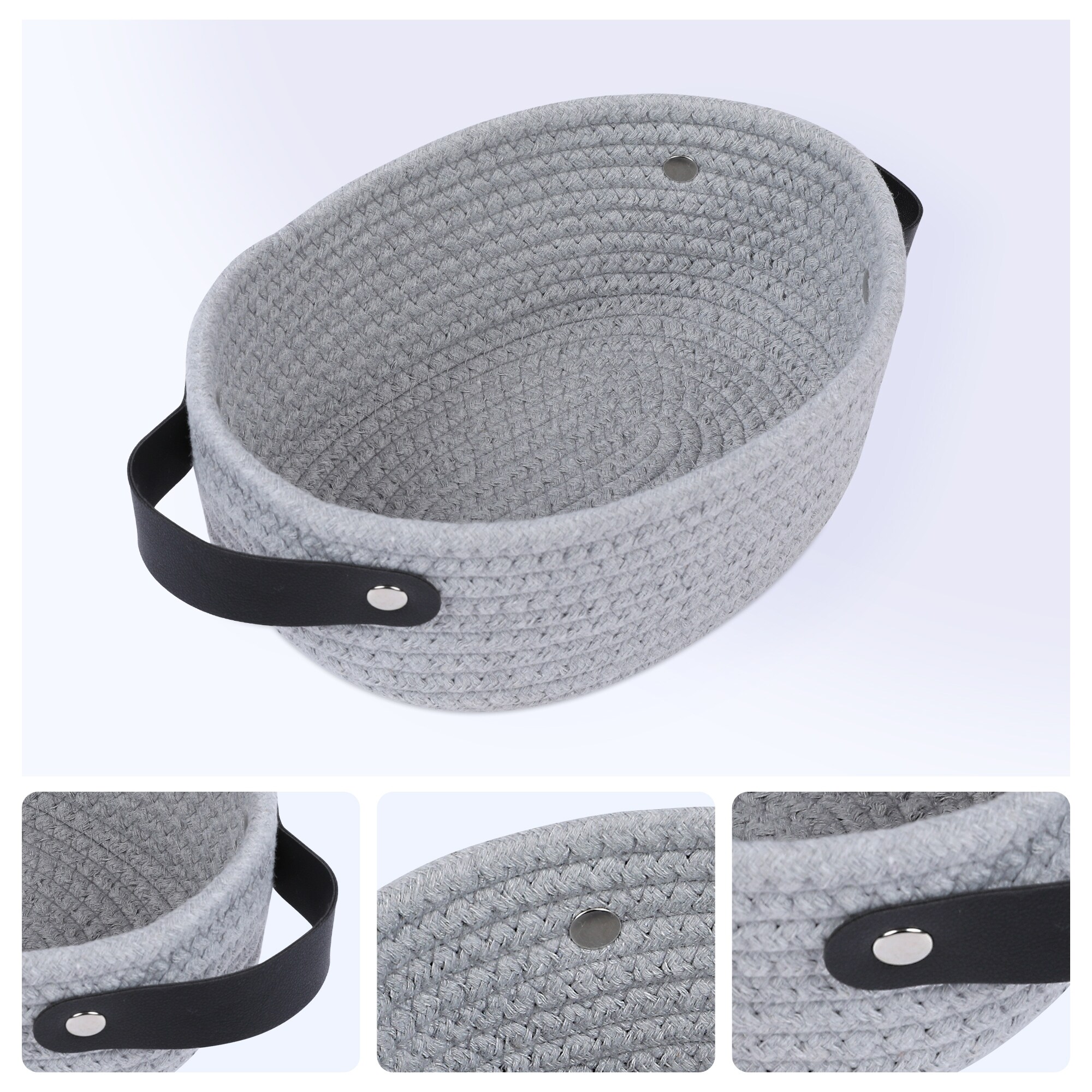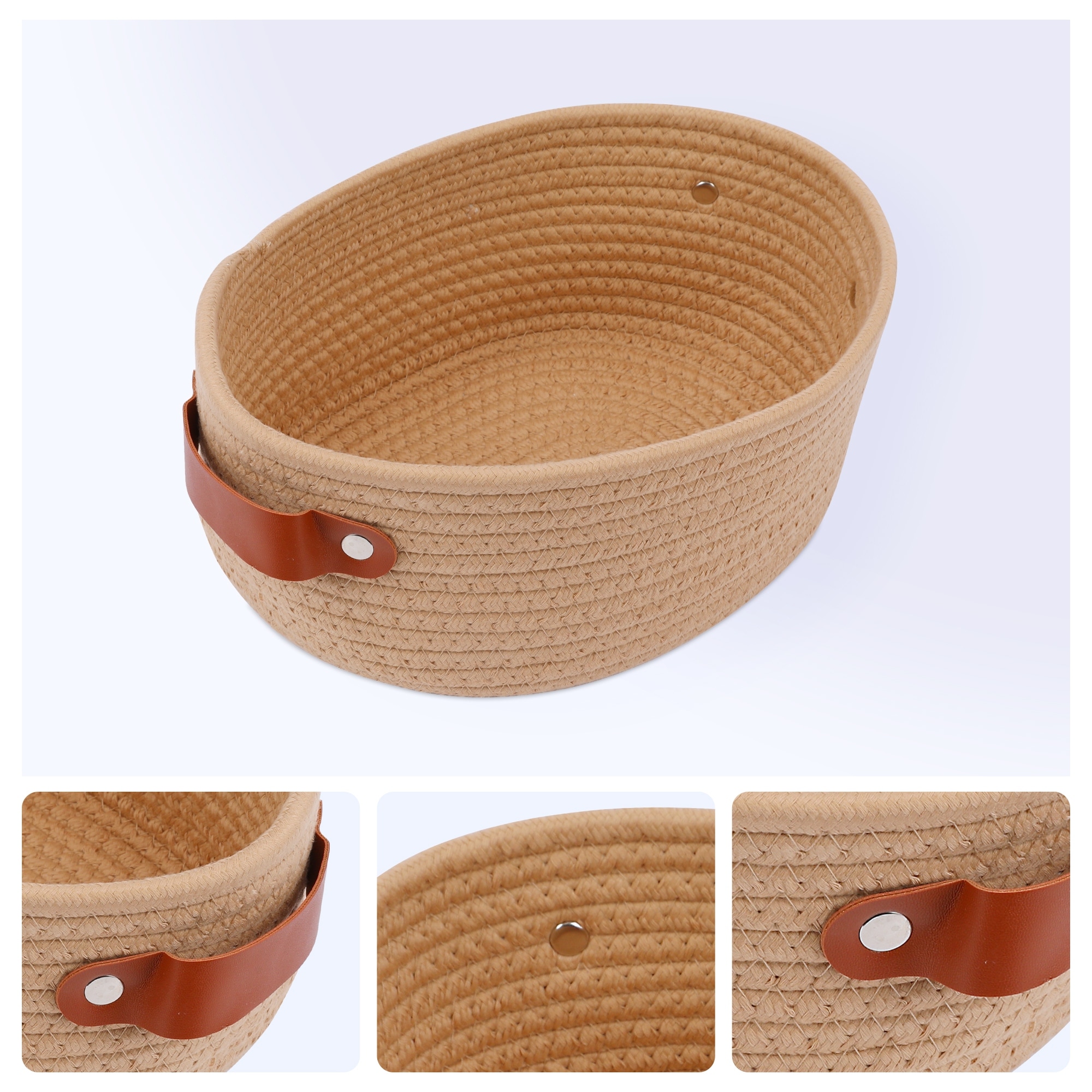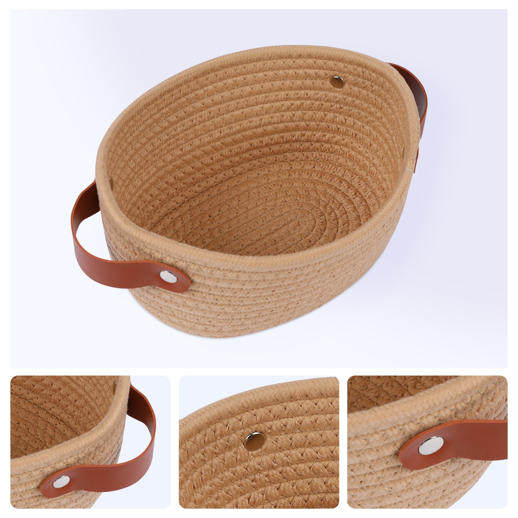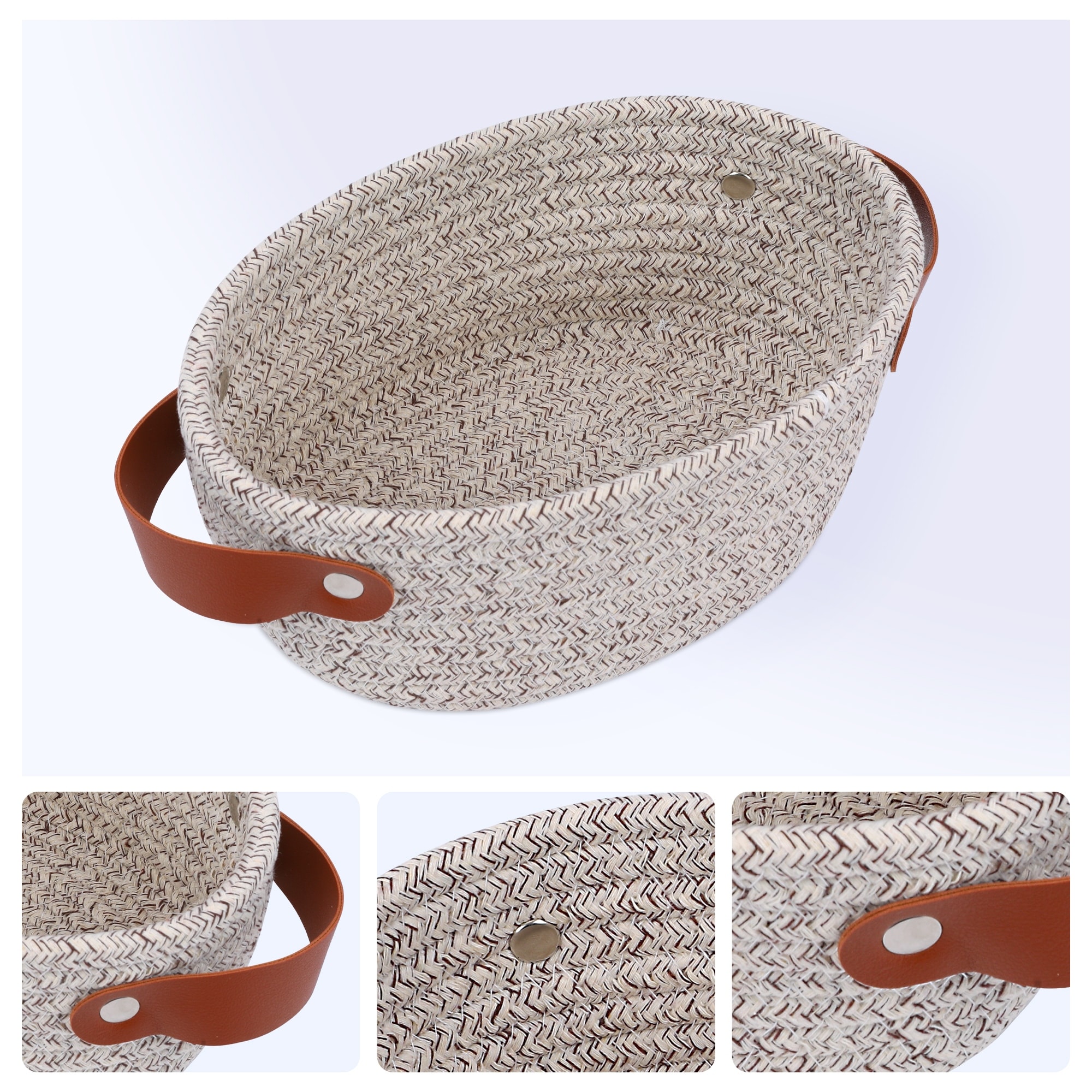 3 Packs Woven Storage Basket, Shelf Closet Oval Storage Bin with Handles for Key Tray Bowl for Entryway Desk, Home Decor
