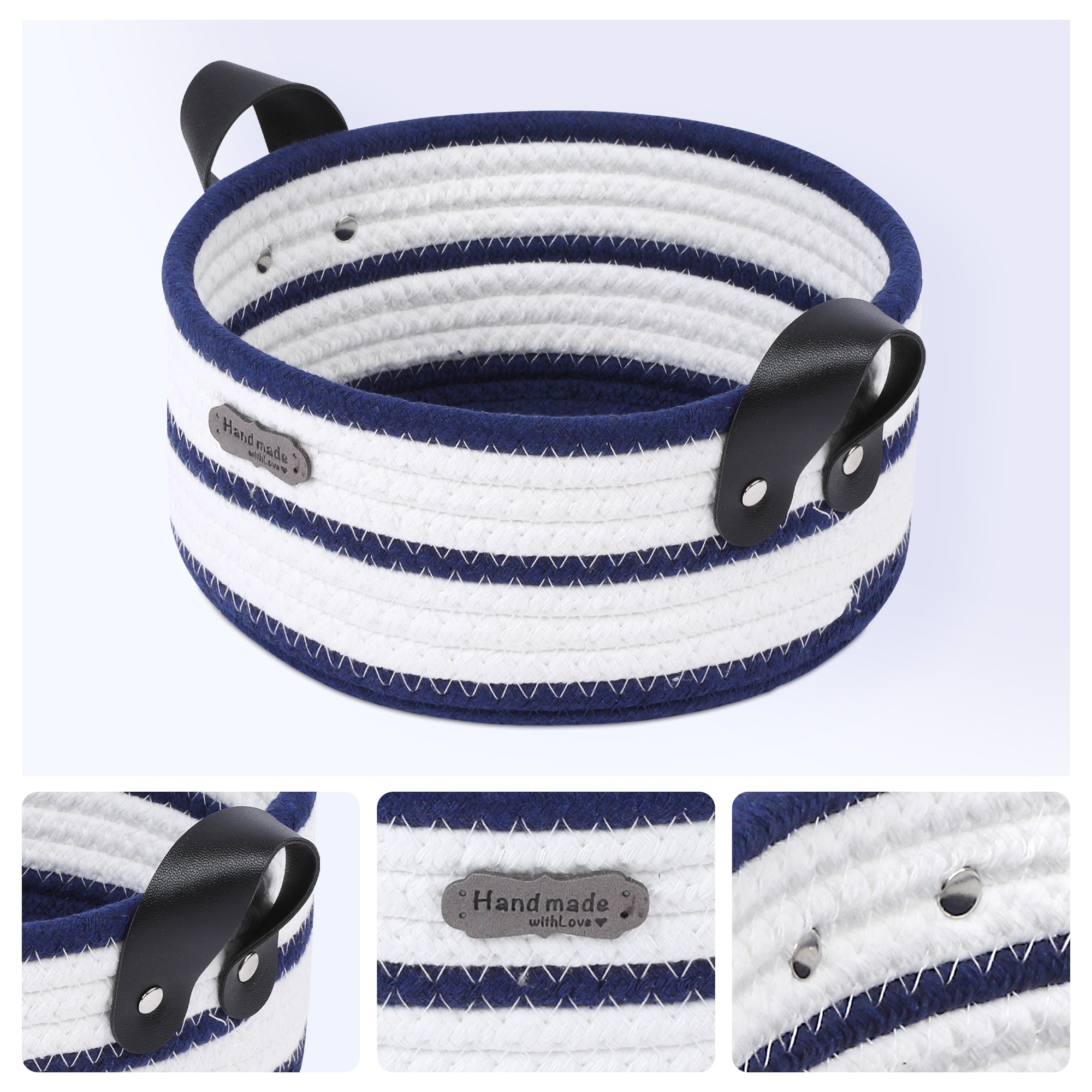 3 Pack Woven Storage Basket, Shelf Closet Storage Bin with Handles for Key Tray Bowl for Entryway Desk - 7*5.5*5in/12*8.3*6.3in