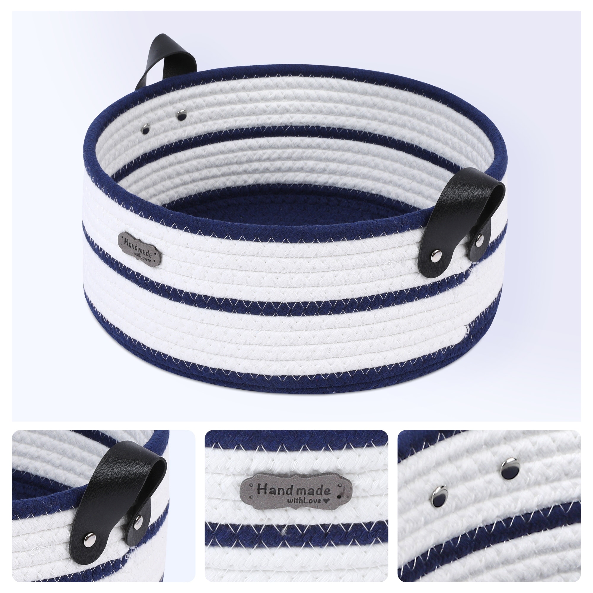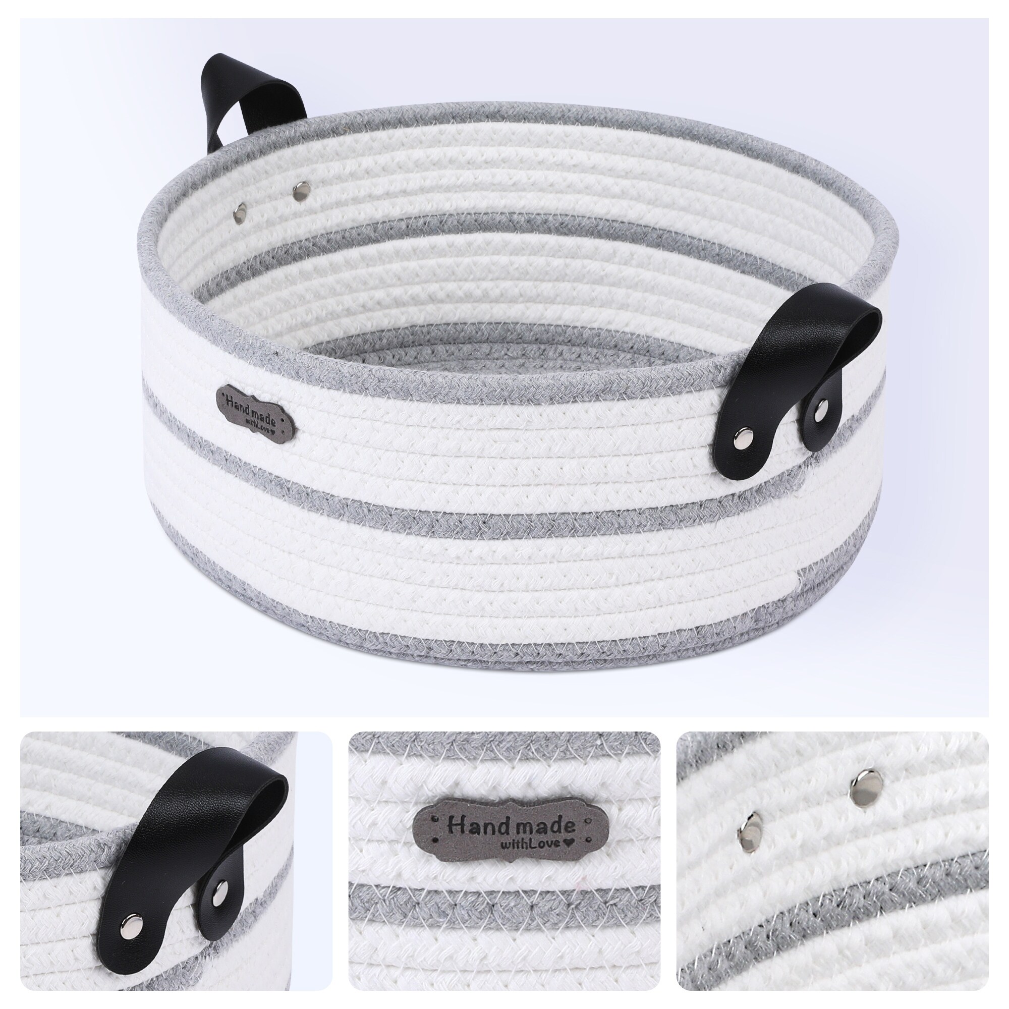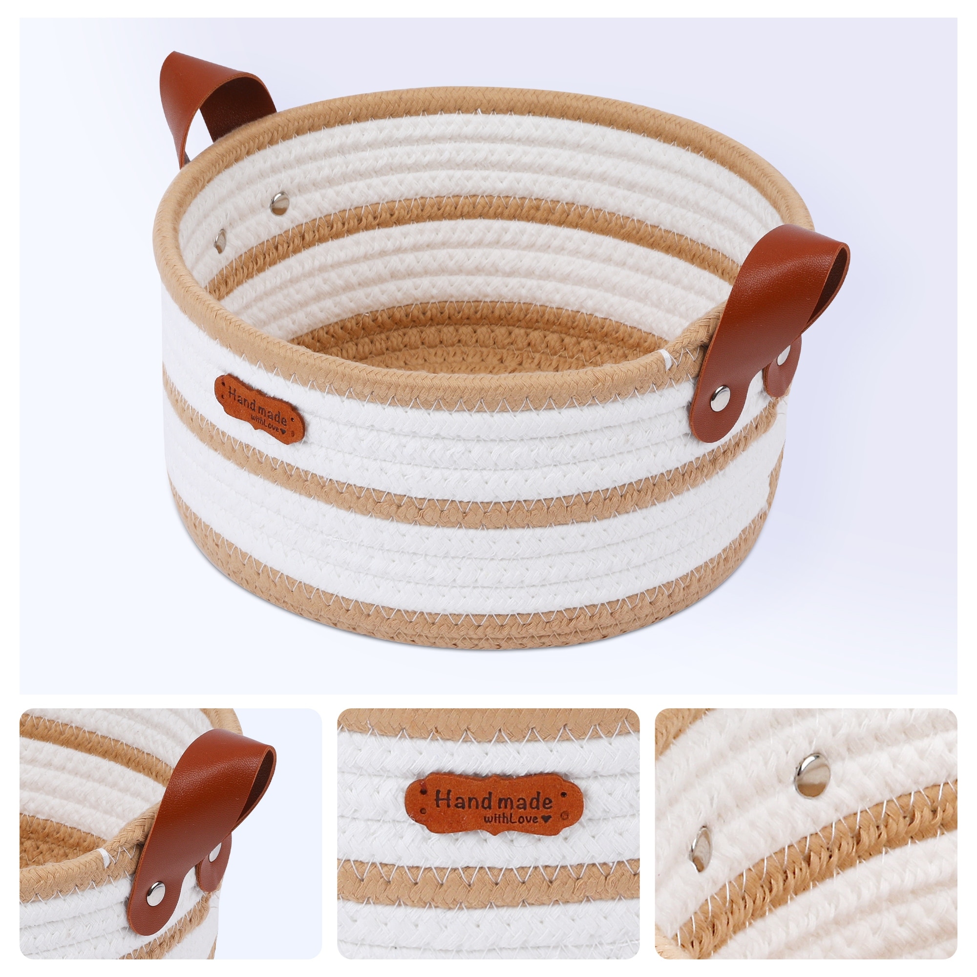 1 Pack Woven Storage Basket, Shelf Closet Storage Bin with Leather Handles for Key Tray Bowl for Entryway Desk, Home Decor