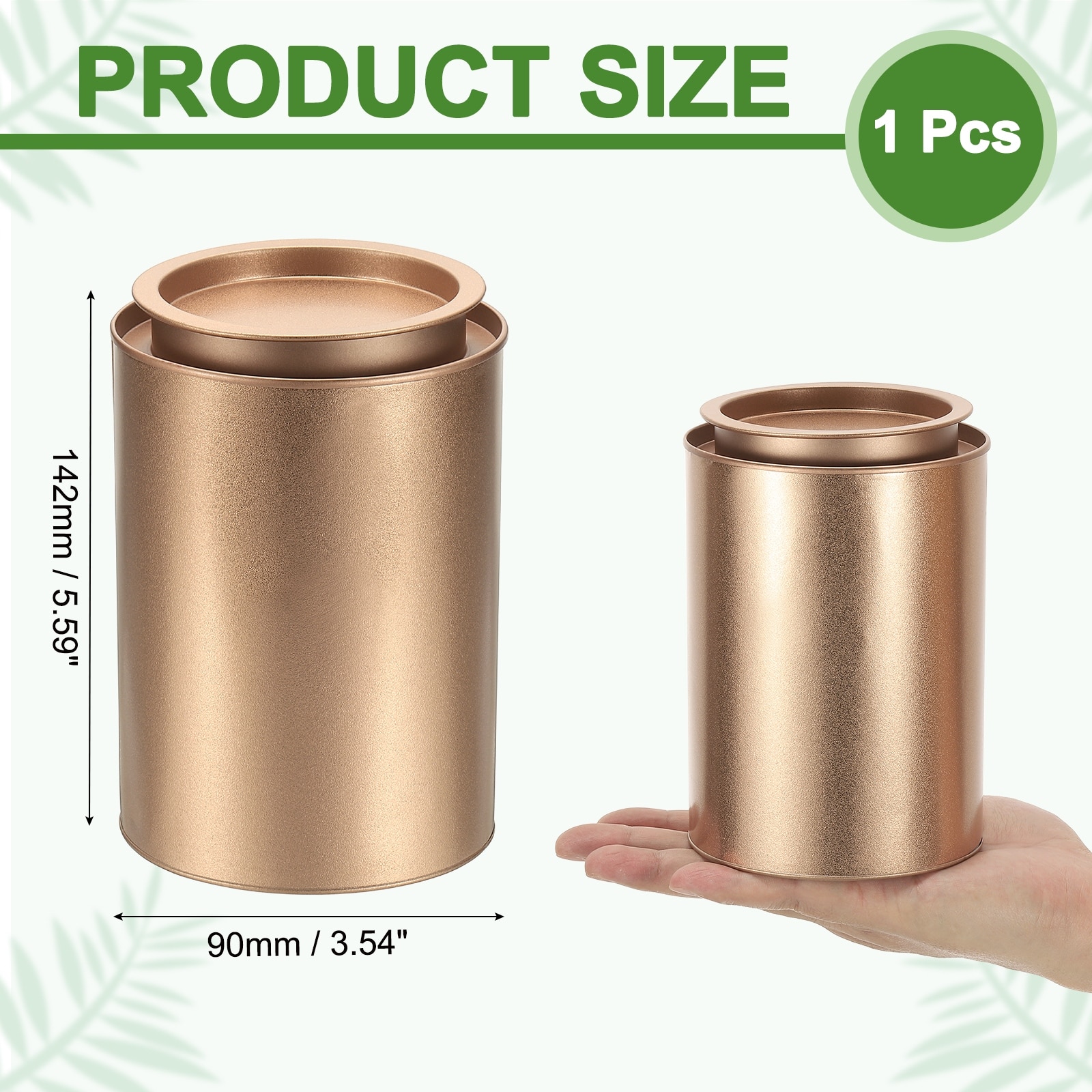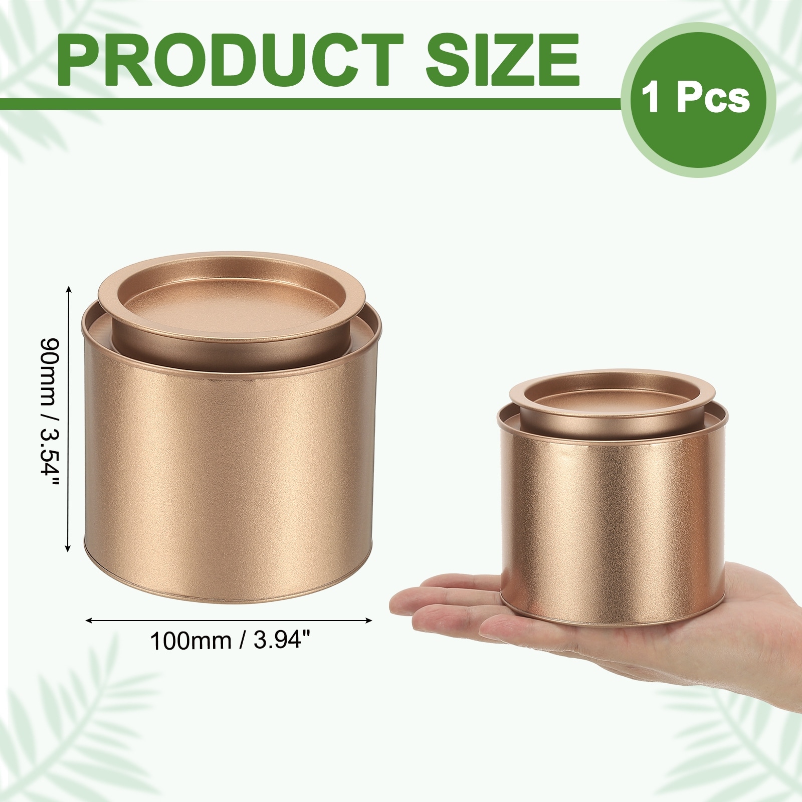 3.94 x 3.54" Round Loose Tea Airtight Metal Storage, Gold Tone