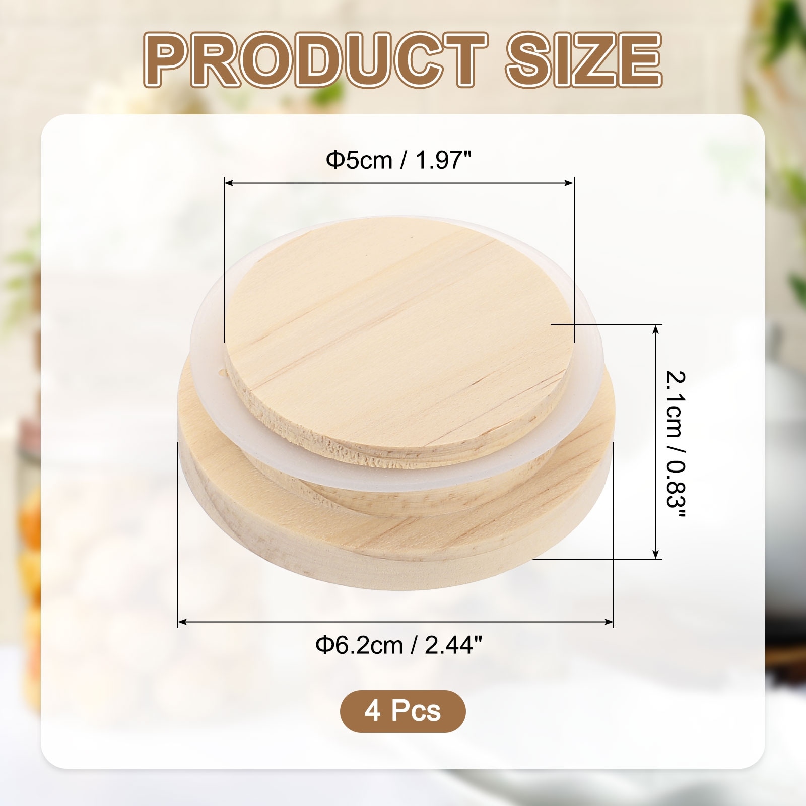 Bamboo Mason Jar Lids, Wooden Mason Jar Lid Bamboo Lids Wide Mouth Mason Jars with Silicone Sealing Rings - Wood Color