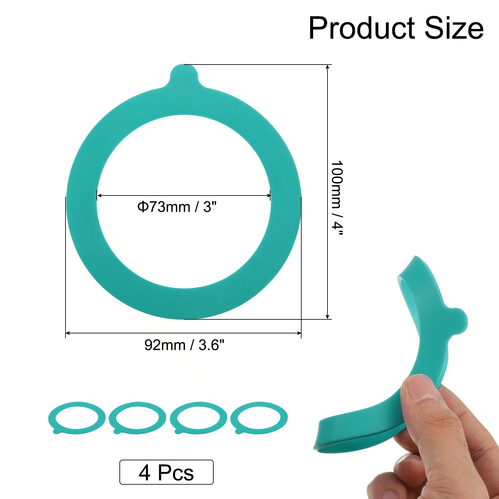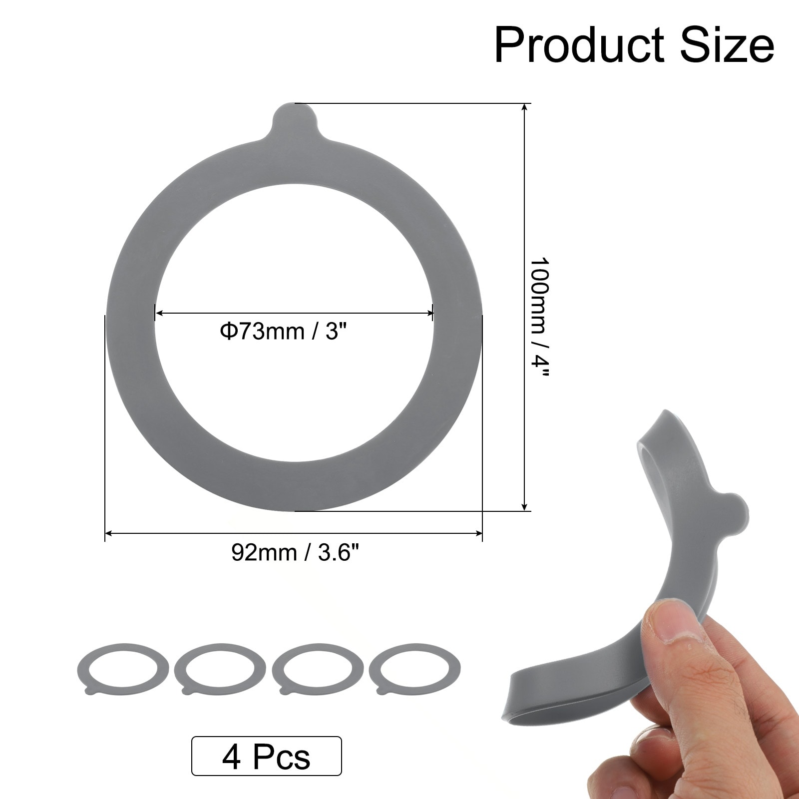 Rubber Seals for Glass Jars Silicone Sealing Ring - 4 Pcs, 3.7 Inch OD