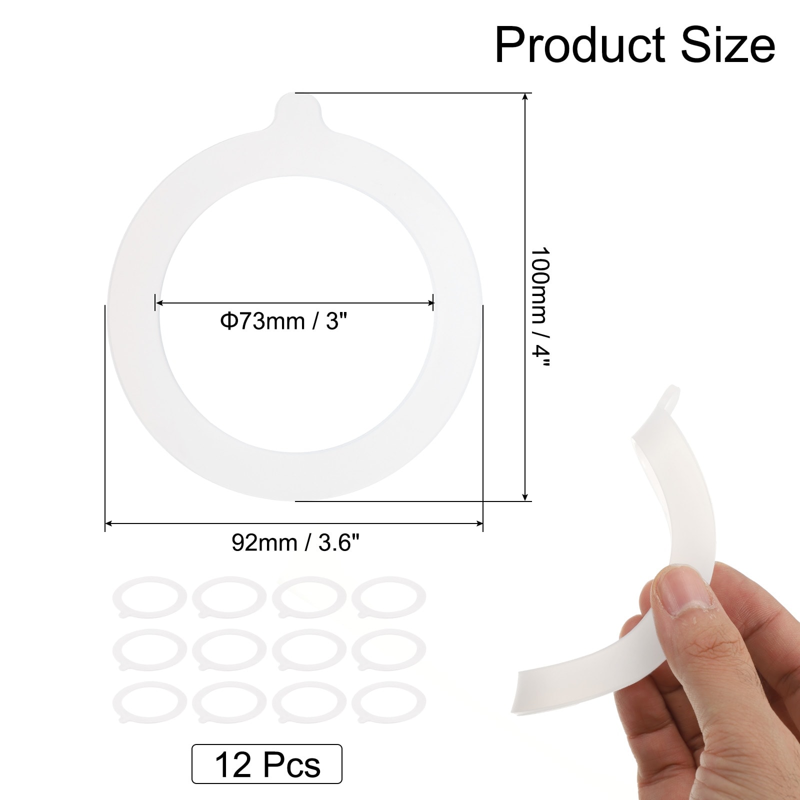 Rubber Seals for Glass Jar Silicone Sealing Ring - 12 Pcs, 3.7 Inch OD
