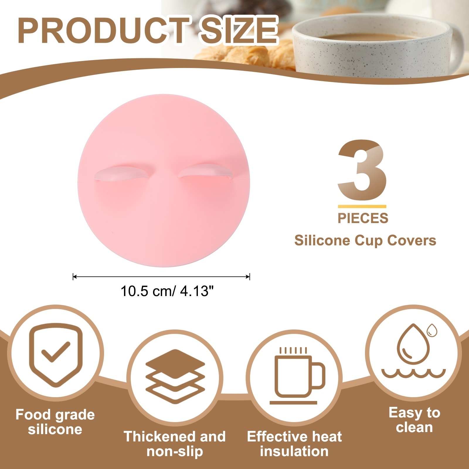 Silicone Cup Lids, Cat Ear Universal Cup Lids for Mugs, Tea Cups, Coffee Cups, Dust-proof Reusable - 3Pcs, 4.1 Inch