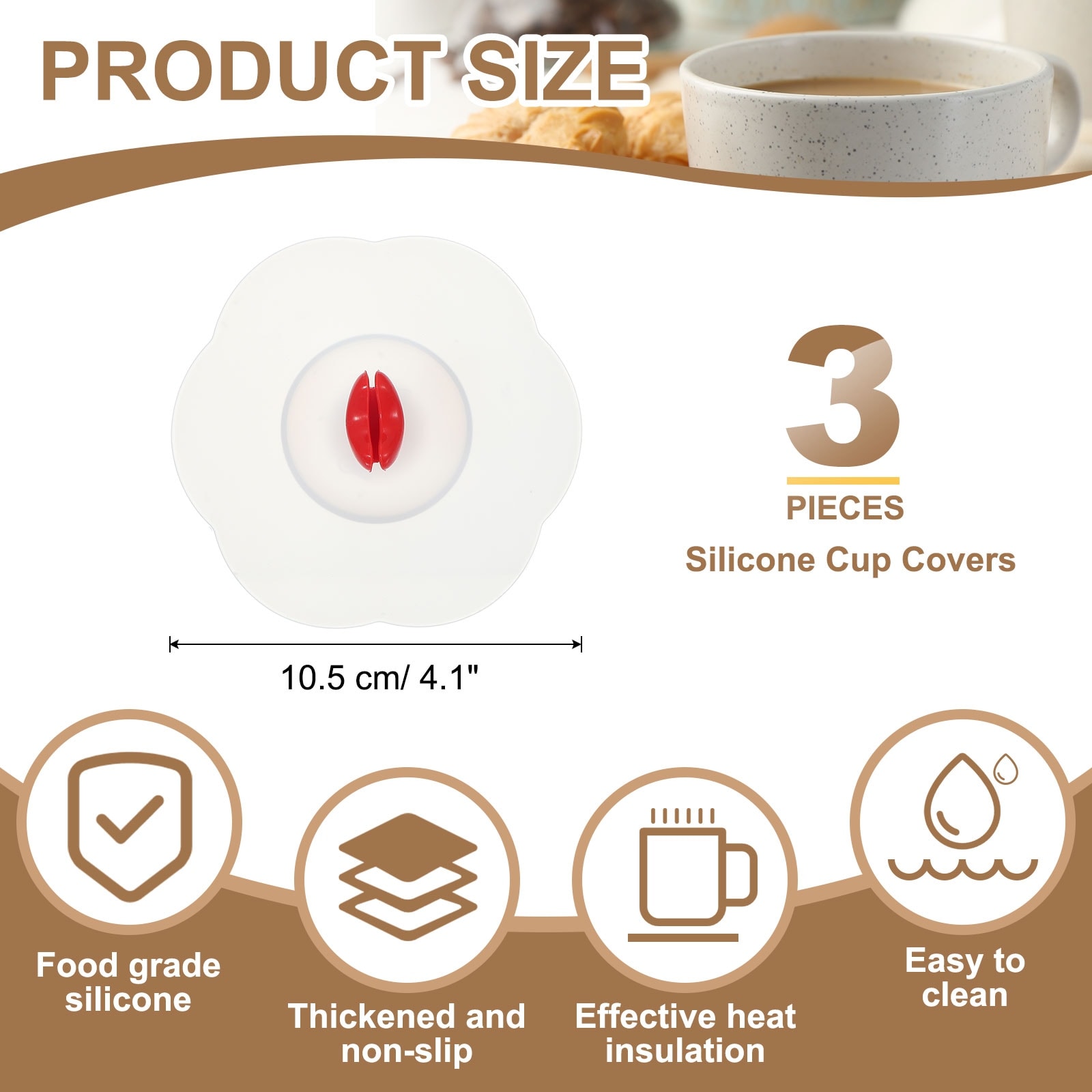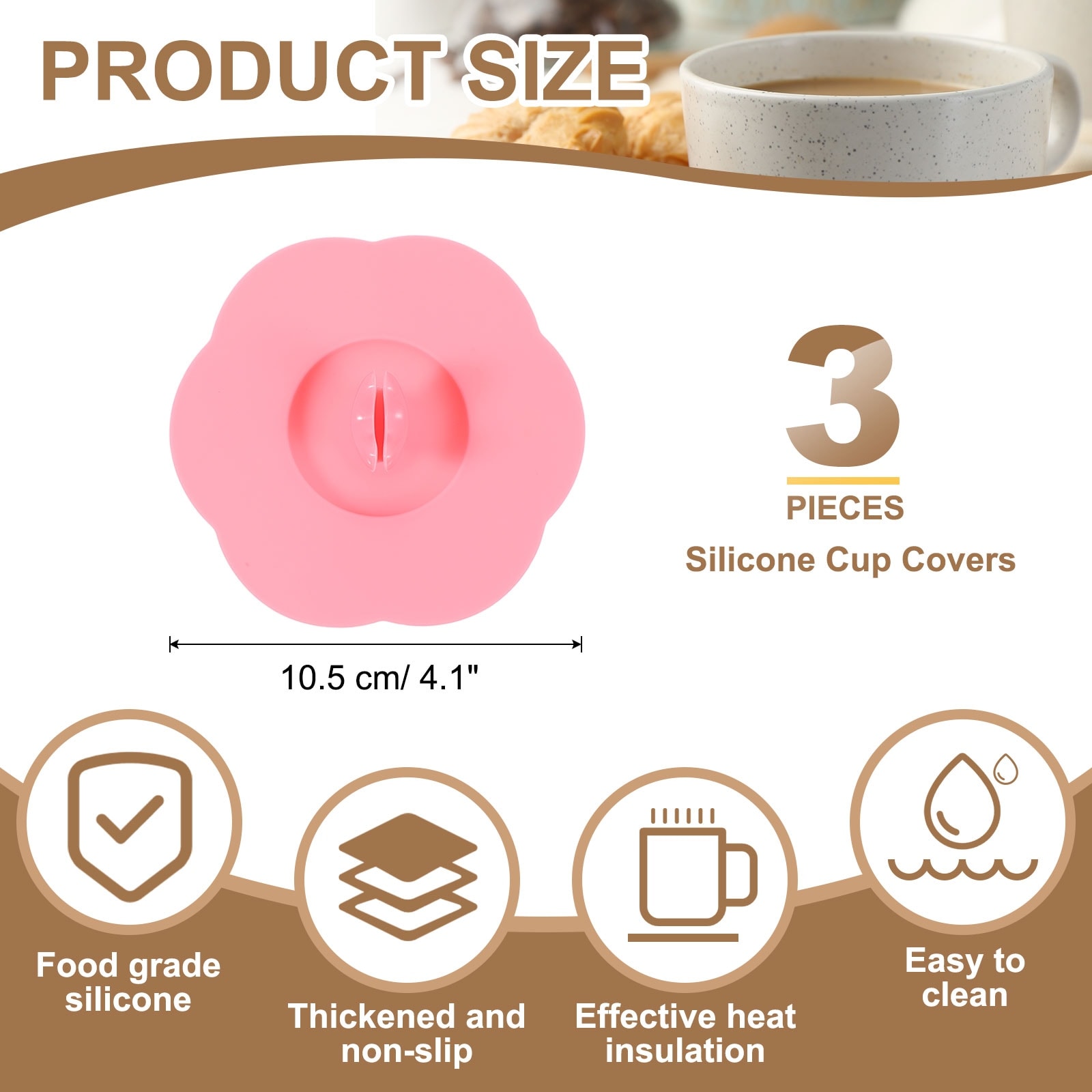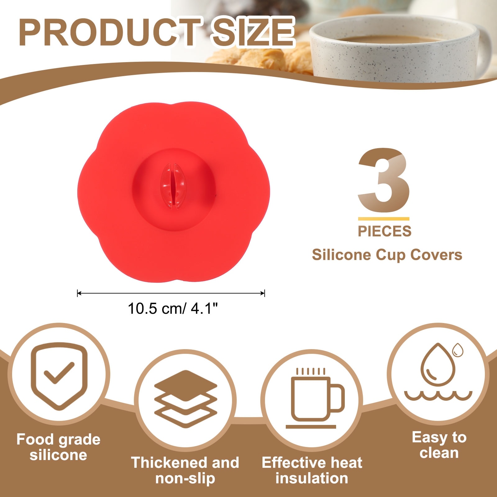 Silicone Cup Covers, Heart Universal Cup Lids Reusable Drinking Hot and Cold Beverages for Mugs Tea Cups Coffee Cup - 3Pcs, 4.1"